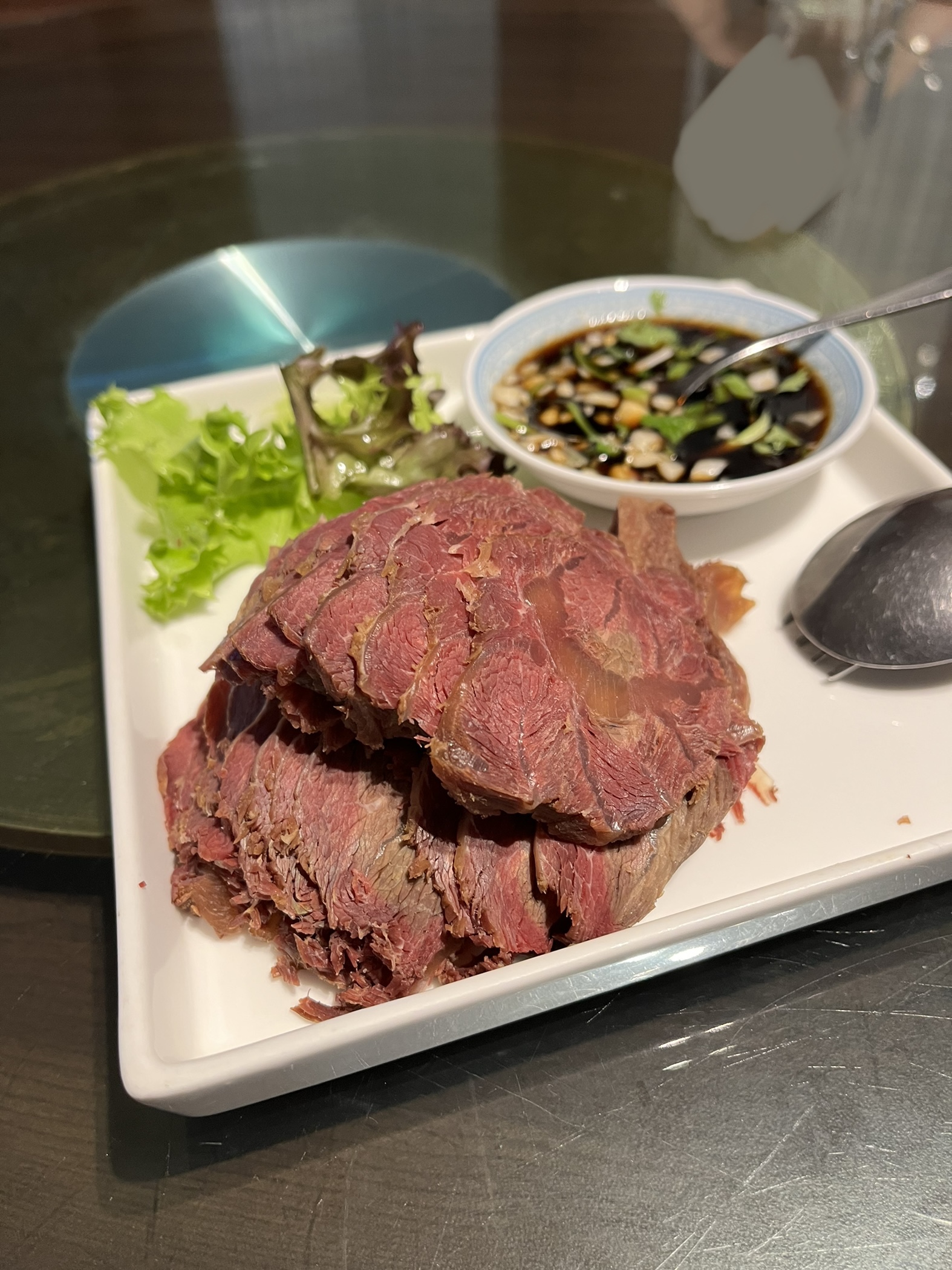 모임을 주최한 분이 여기에 연속으로 세 번이나 온 전문가였기 때문에 모든 메뉴를 다 맡겼다. 첫 요리로는 오향장육이 나왔다. 오향장육은 처음 먹어봤는데 신기했다. 한국에서 먹어본 맛인 것 같으면서도 새로운 맛.