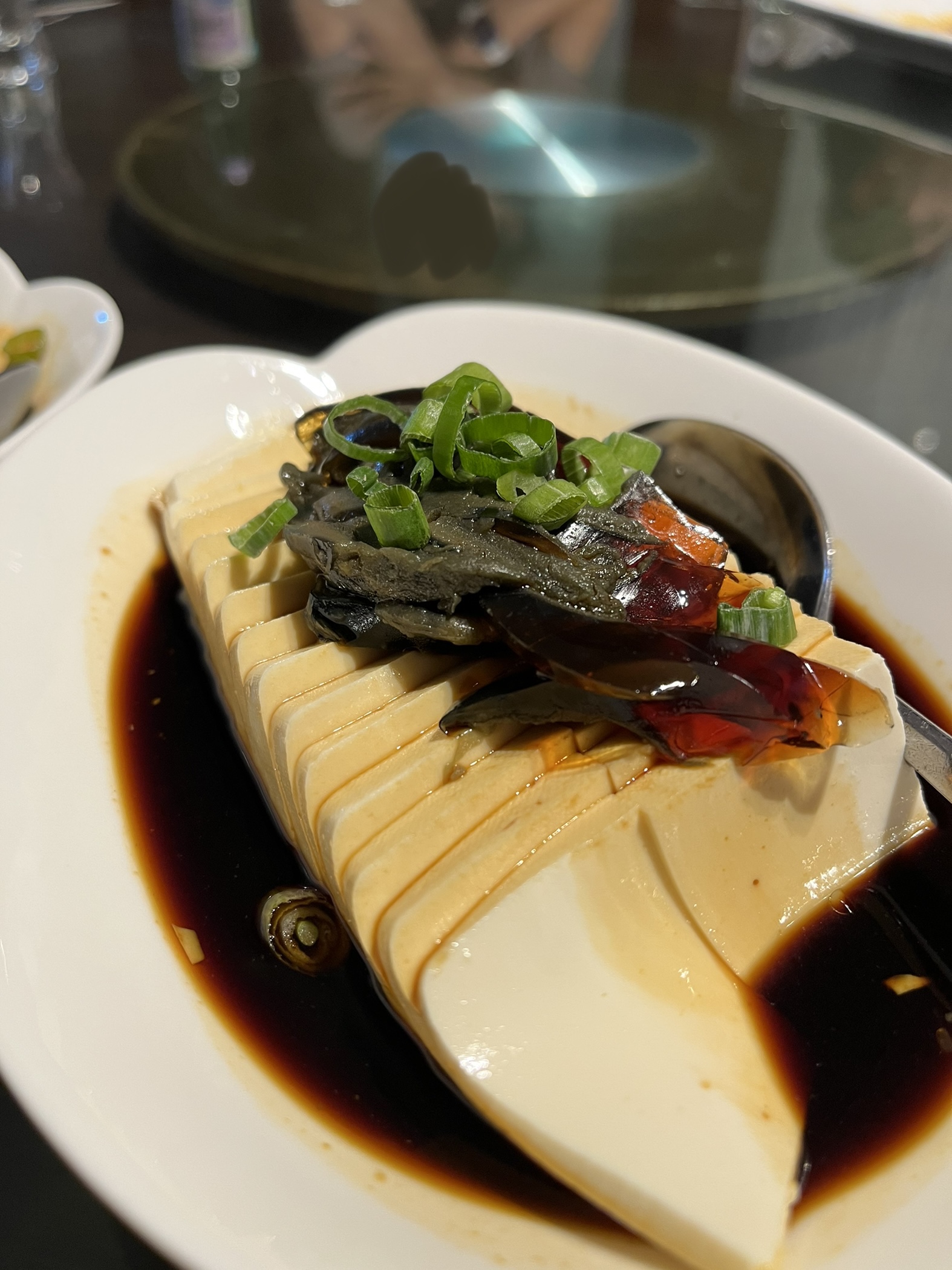 연두부 느낌의 두부와 간장 베이스 소스. 위에는 뭔지 모를 무언가가 올려져 있었는데 아무도 안 먹었다. 두부는 예상 가능한 맛. 오랜만에 먹는 두부라서 맛있었다.