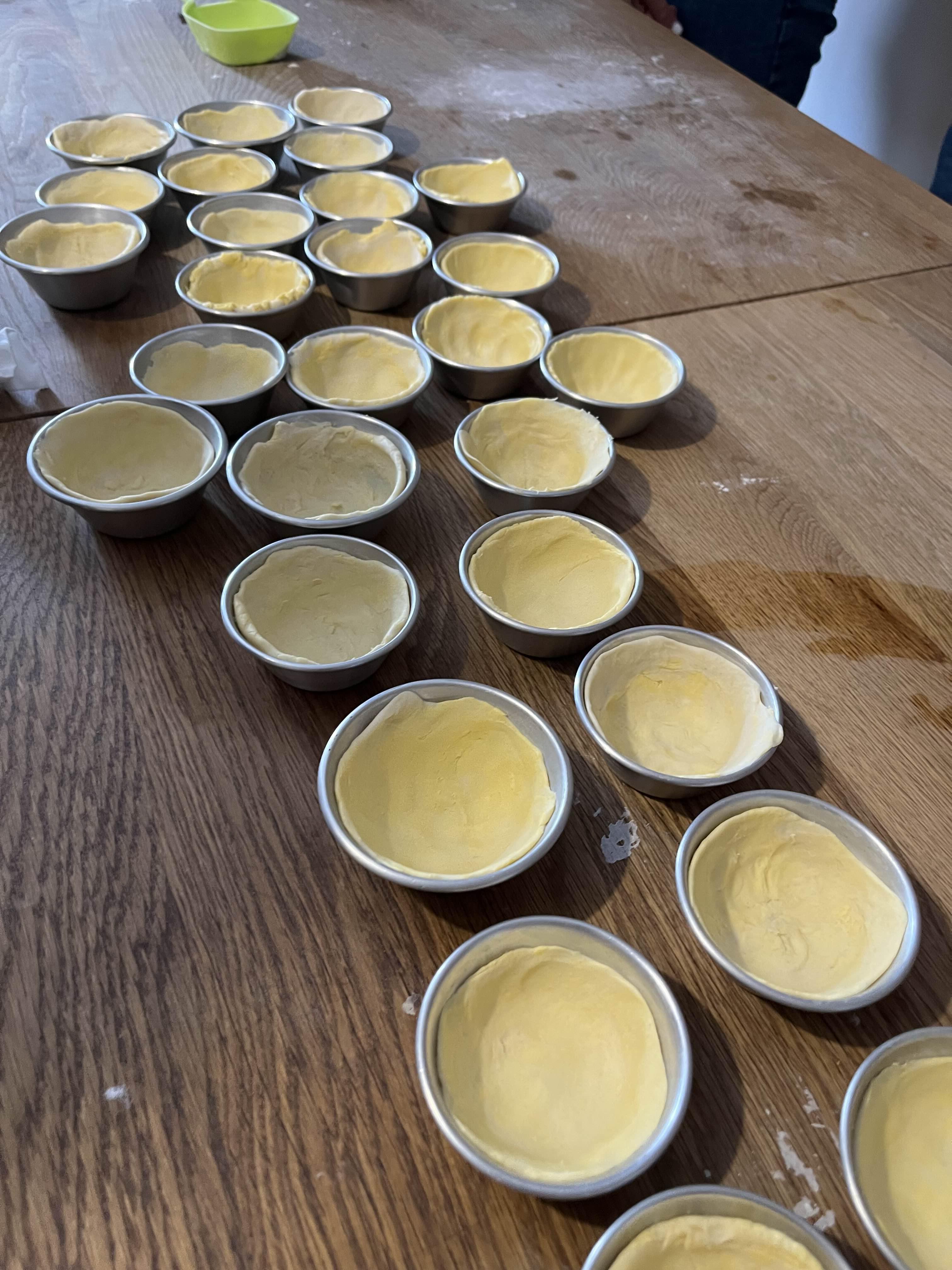 이전에도 에그타르트를 몇 번 구운 적이 있는데 너무 하는 방식이 달라서 그건 나타라고 부르면 안 될 것 같다 😅 버터를 다져가지고 뭉쳐서 자르고 겹치고 자르고 겹쳐서 레이어를 만들어내는 방식인데 이건 쉽게 하는 방법이고 여기서는 정석대로 하는 방법을 배웠다.