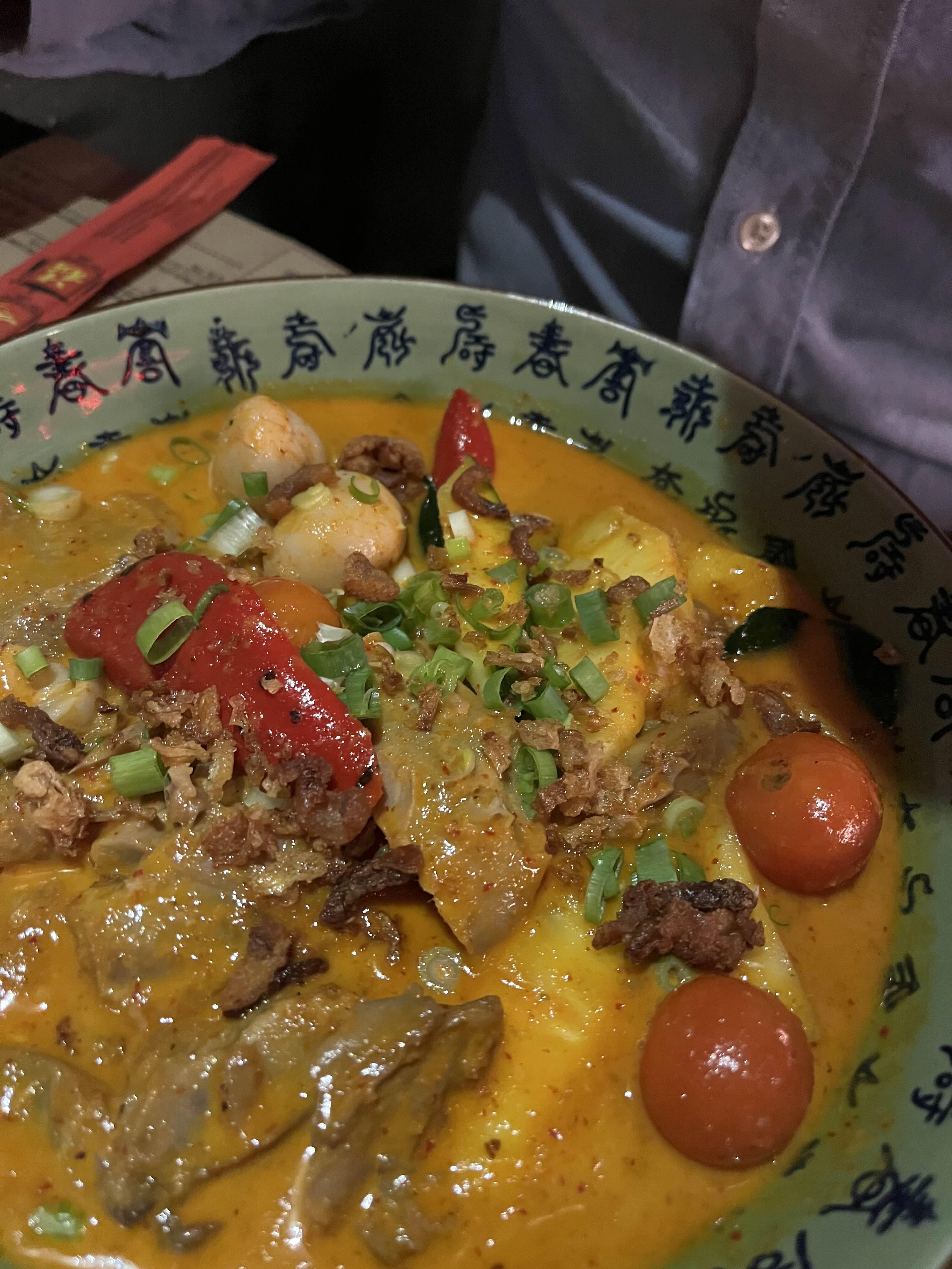 테이블에 앉은지 거의 1시간이 되어서야 메인 요리가 나왔다. 전식을 안 시켰으면 좀 더 빨리 나왔을까? 아니면 그래도 늦게나와서 더 배고팠을까? 이 요리는 친구가 시킨 리치와 파인애플이 들어간 레드 커리다. 나는 절대 시키지 않을 음식이지만 친구는 맛있게 먹었다. 그치만 다음에 오면 시키지 않을거라고 했다. 리치가 커리랑 안 어울린다고 했다.