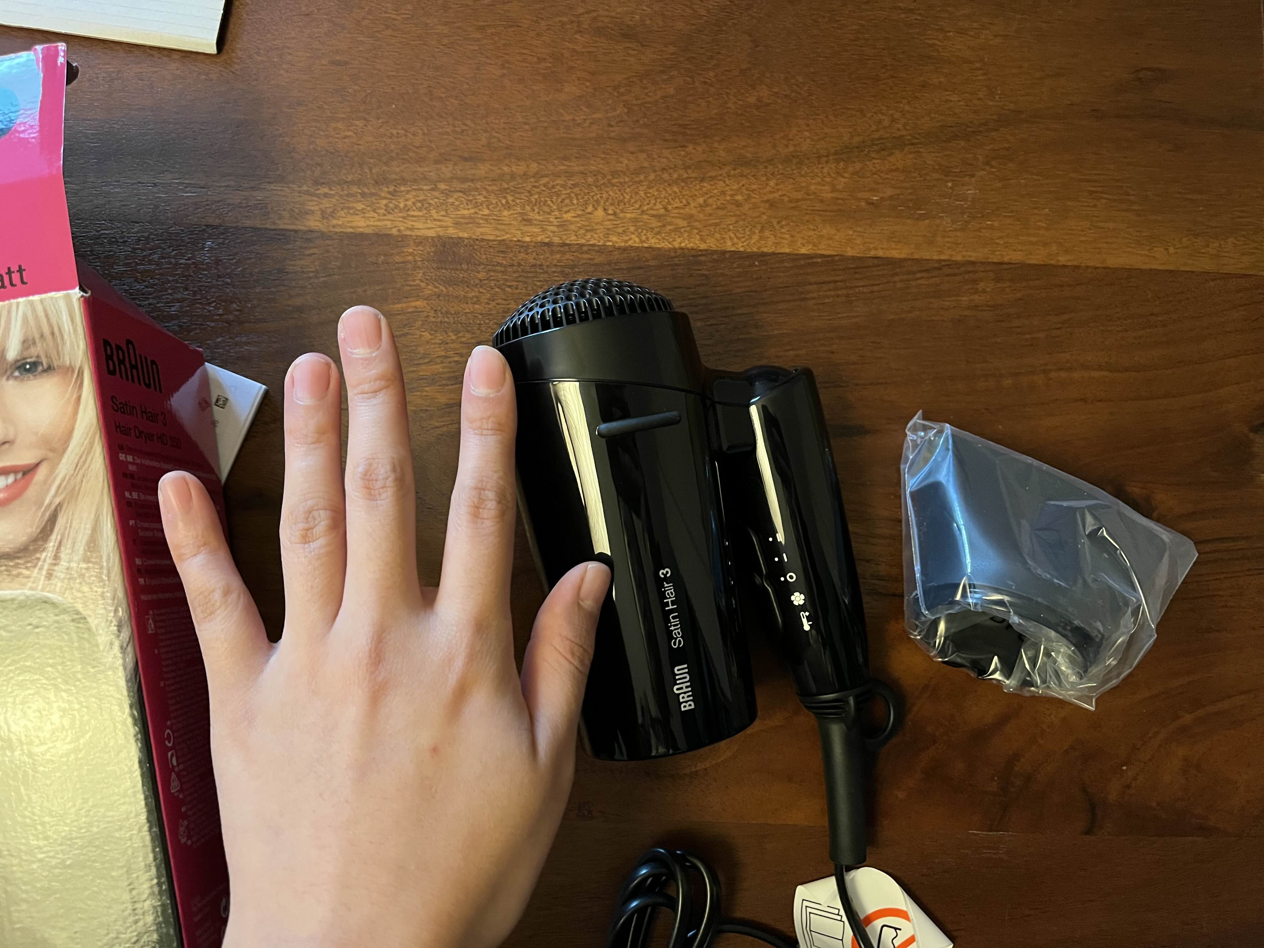 미니 드라이기는 독일 사람들도 많이 쓰는지 저렴한 제품도 많이 보였다. 너무 저렴한 걸 사면 불날까봐 와트도 너무 낮지도 않고 접히는 거 중에서 그래도 본 적 있는 Braun걸로 주문했다.