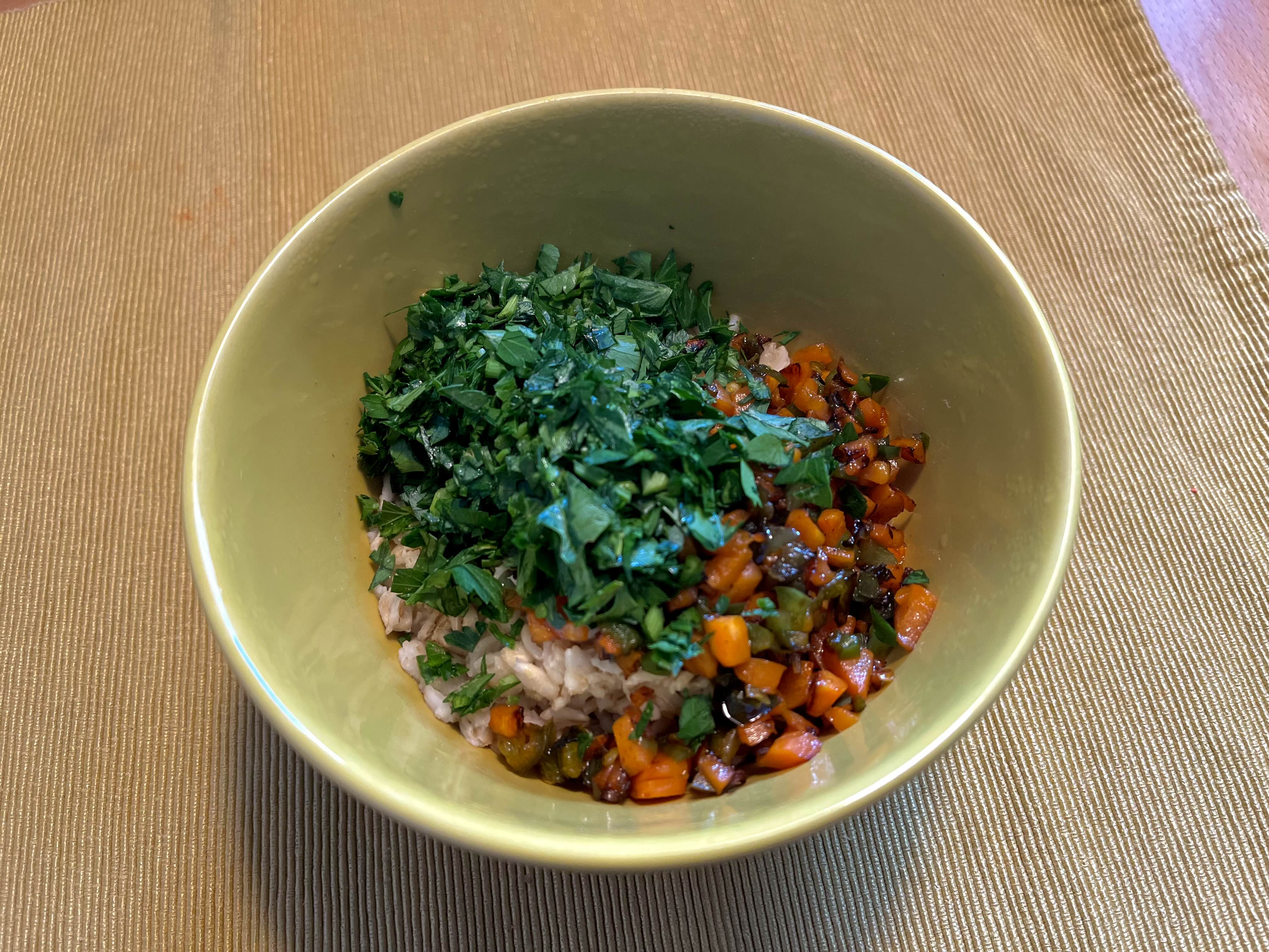 파슬리를 다져서 넣어주고 이날은 볶은 할라피뇨와 당근도 넣었다. 사실 땡초 김밥을 하려고 한 건데 냉장고에 잊고 있던 파슬리가 생각나 파슬리가 메인이 되었다. 파슬리를 좋아해서 잔뜩 넣었지만 향이 너무 강하면 조금 적게 넣어도 된다.