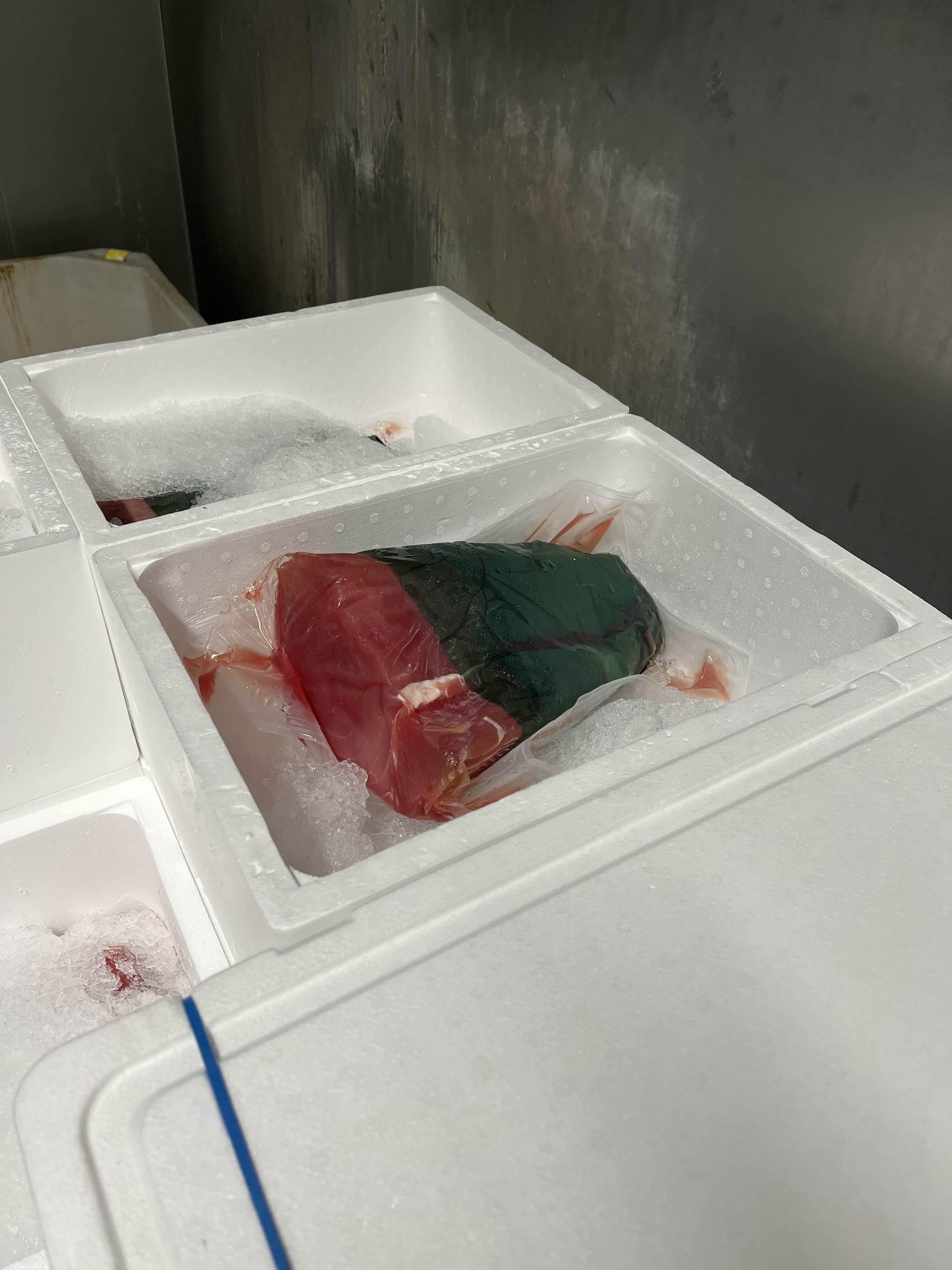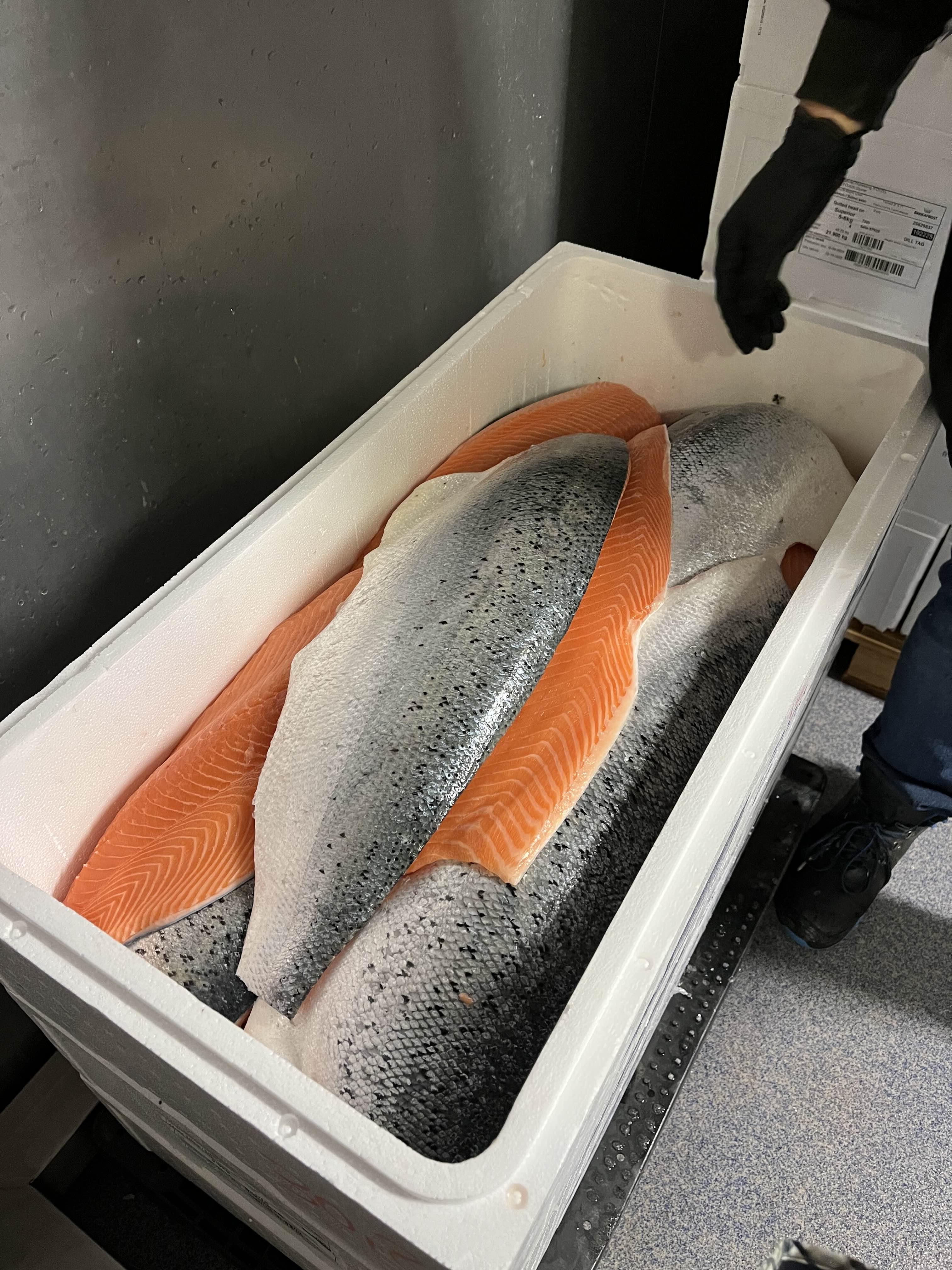 계산을 하고 있으면 연어를 포장해서 가져다준다. 거대한 연어 😆