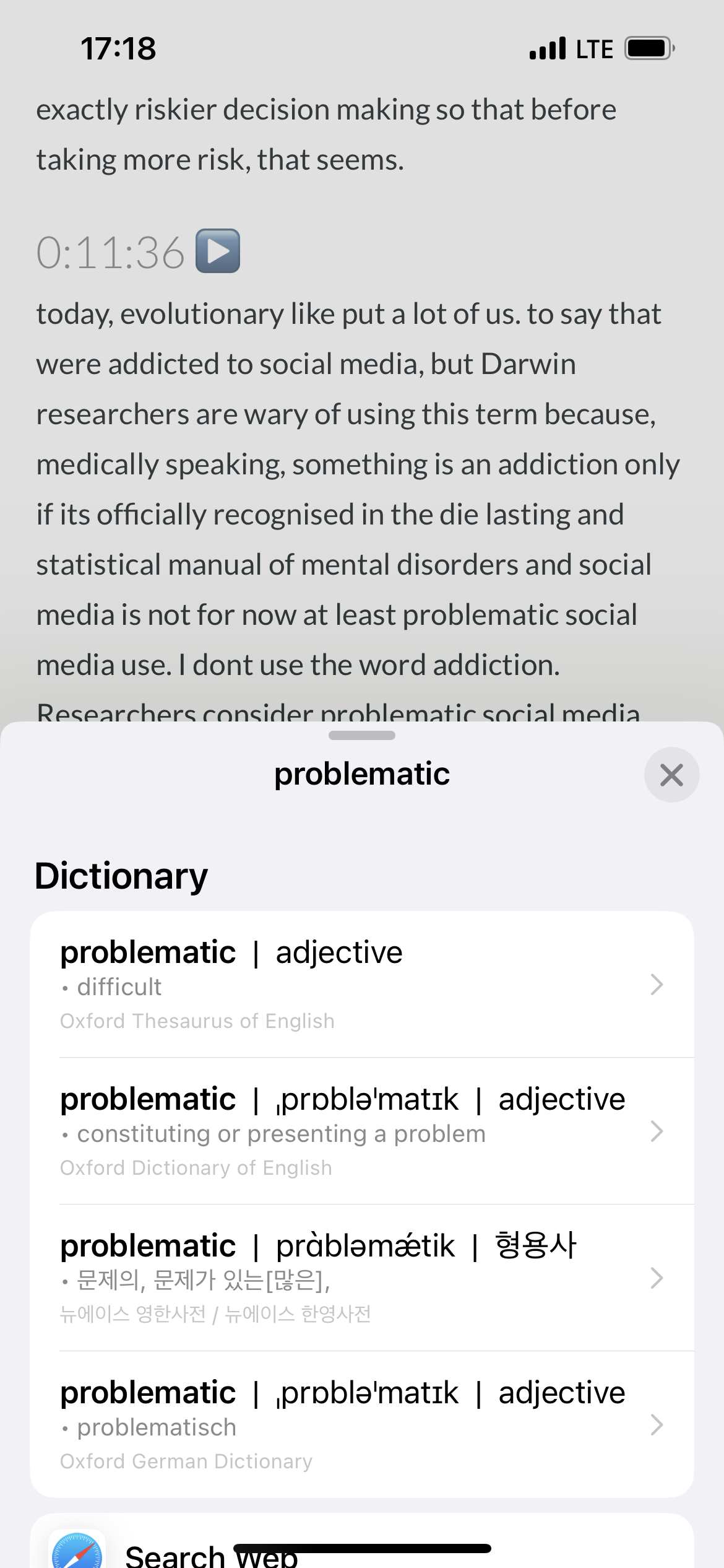 찾아보기를 했을 때 이제 위키피디아가 아닌 사전이 바로 뜬다 🙌 계속 스크롤하기 귀찮아서 찾아보기가 아니라 번역 기능을 썼었는데 번역은 또 매번 언어를 이상한게 설정이 되가지고 이거대로 또 번거로웠다. 이제 다시 찾아보기를 편하게 쓸 수 있어서 좋다 😌