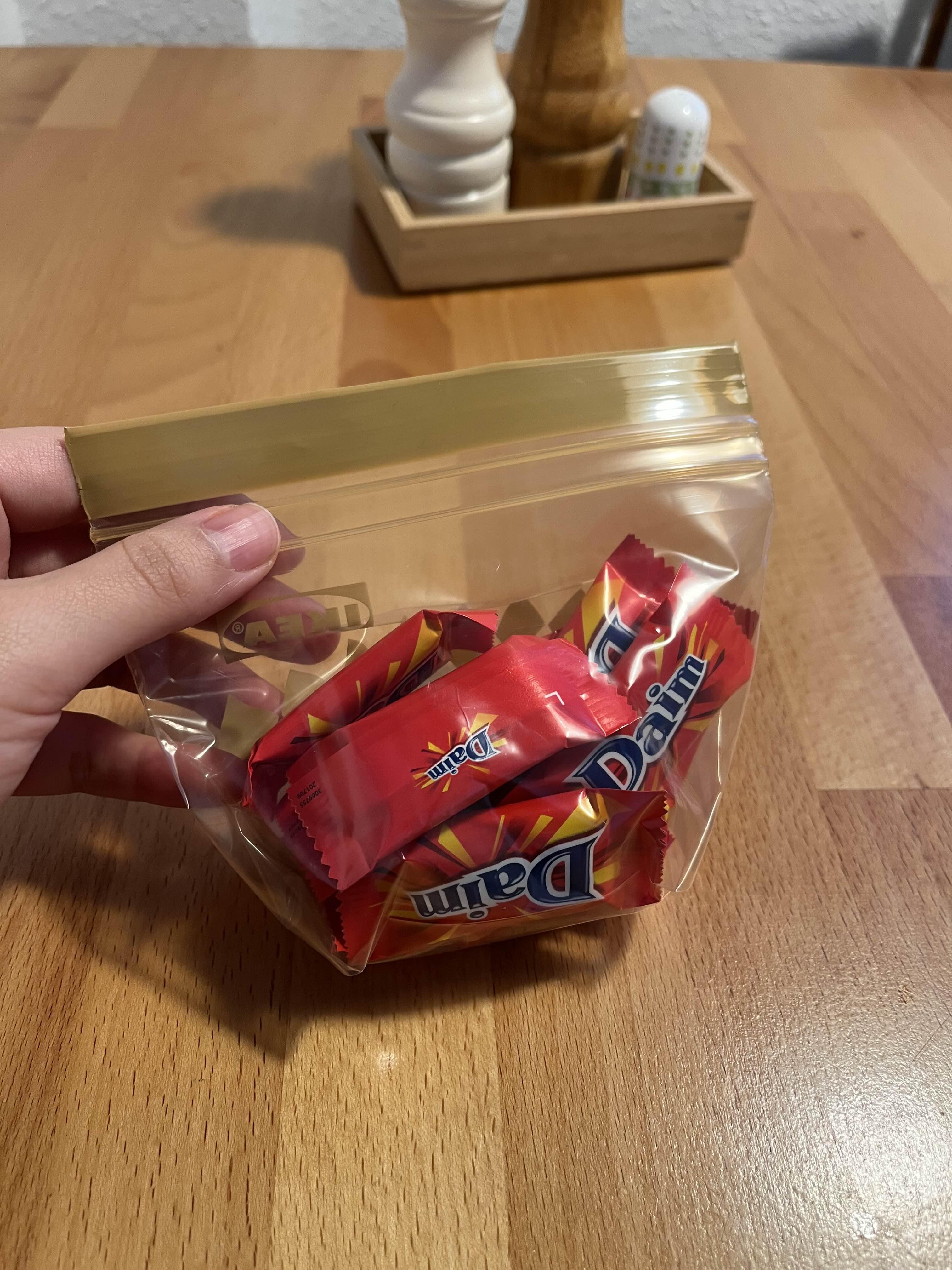 요렇게 미니 지퍼백에 넣어서 들고다니면 딱이다. 여기에 넣어서 여기저기 나눠주다보니 한 봉지 벌써 거의 다 먹었다 🫠 이케아 또 가야하나..