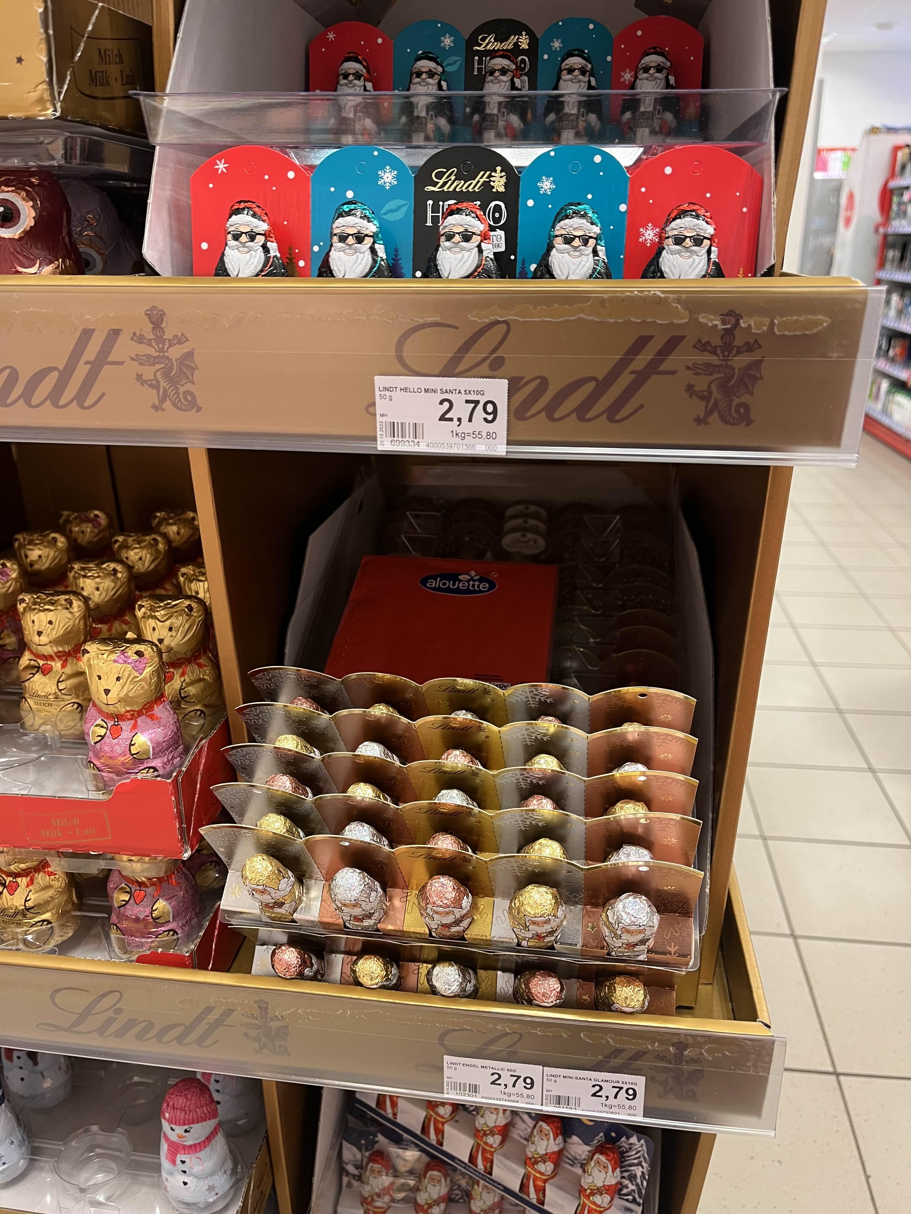 위에 막대 초코렛이 가성비로 나눠주기 좋다면 이건 린트 초코렛이라 퀄리티도 괜찮다. 작년에도 이 산타 초코렛을 사 갔는데 올해도 가져와보니 작년 산타도 귀여워서 못 먹었다면서 엄마가 작년 산타 초코렛을 가져왔다. 매년 새로 가져올 테니 제발 아끼지 말고 먹으라고요… 😭