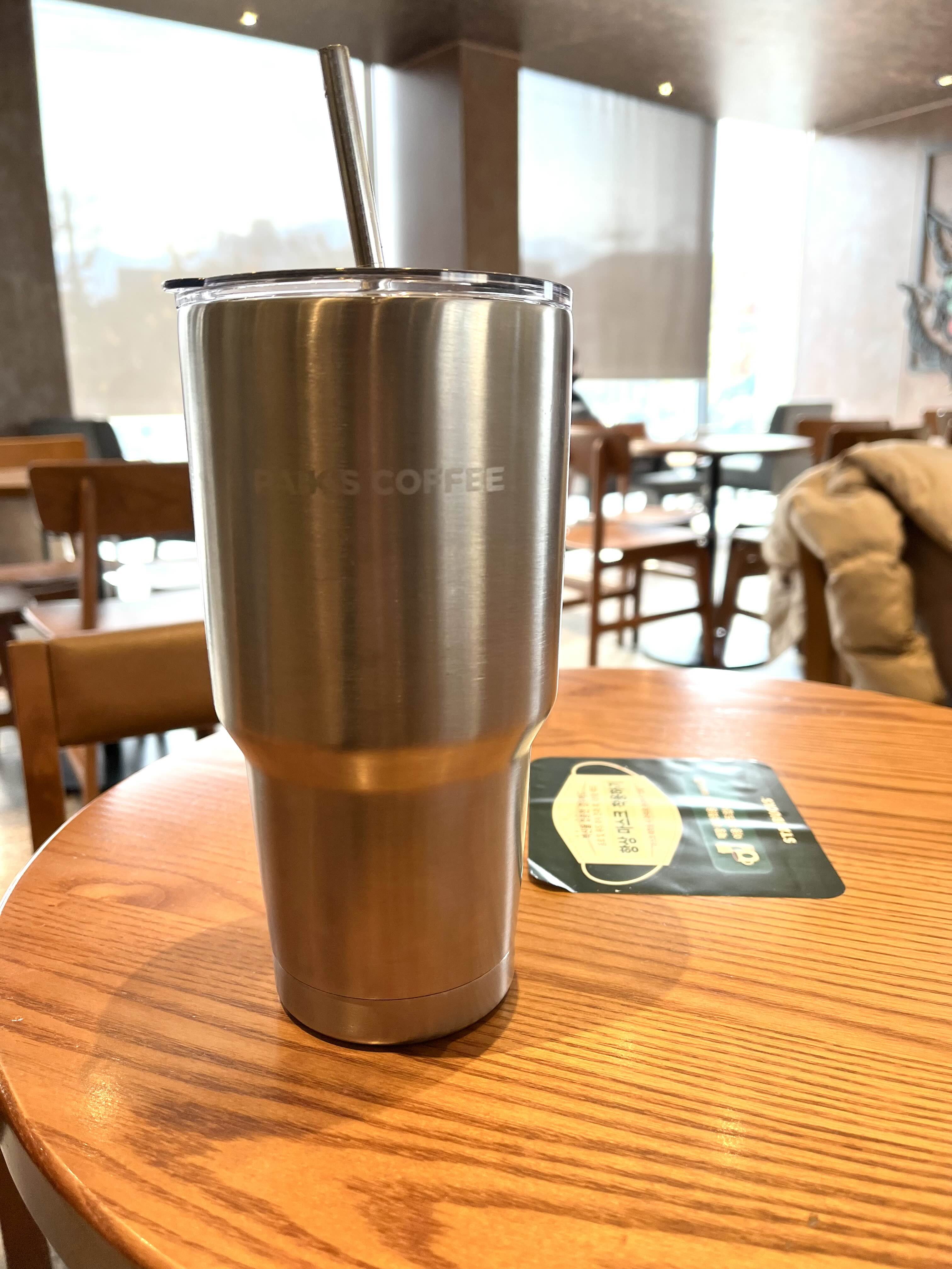 독일에서 카페는 잘 안 가지만 한국에 오면 여러 가지 음료들을 먹어보려고 카페에 자주 들른다. 독일에서 보기 힘든 미숫가루 라떼, 고구마라떼 등등 이런 맛있는 메뉴가 많아서 좋은데 매번 플라스틱 컵을 쓰기도 그렇고 집에서 물 마실 때도 대용량 텀블러가 하나 있으면 좋겠다 싶어서 텀블러를 알아봤다. 독일에서 쓰고 있는 텀블러가 있지만 입구가 좁아 카페에서 음료를 담기엔 좀 힘들 거 같아서 이번엔 입구가 넓은 종류로 하나 사고 싶었다. 텀블러는 왜 이렇게 또 비싸지? 오래 쓸 거라 제대로 된 걸 사고 싶은데 좀 유명한 브랜드들 텀블러는 진짜 비싸더라. 텀블러에 3-4만 원 심지어 5만 원을 넘기는 텀블러도 있었는데 텀블러에 그 정도 돈을 쓰고 싶지 않아서 쉽게 결정하지 못했다. 그러다 동네 빽다방에서 스쳐 지나간 텀블러가 생각나 빽다방 텀블러를 찾아봤다. 스타벅스처럼 종류가 많은 건 아니지만 심플하면서도 합리적인 가격인 텀블러들이 있었다. 그중에는 내가 원하던 대용량 텀블러도 있었다. 심지어 손잡이랑 스테인리스 빨대 + 세척솔도 같이 주다니. 그래도 14000원이나 해서 조금 고민해보다가 질렀다.