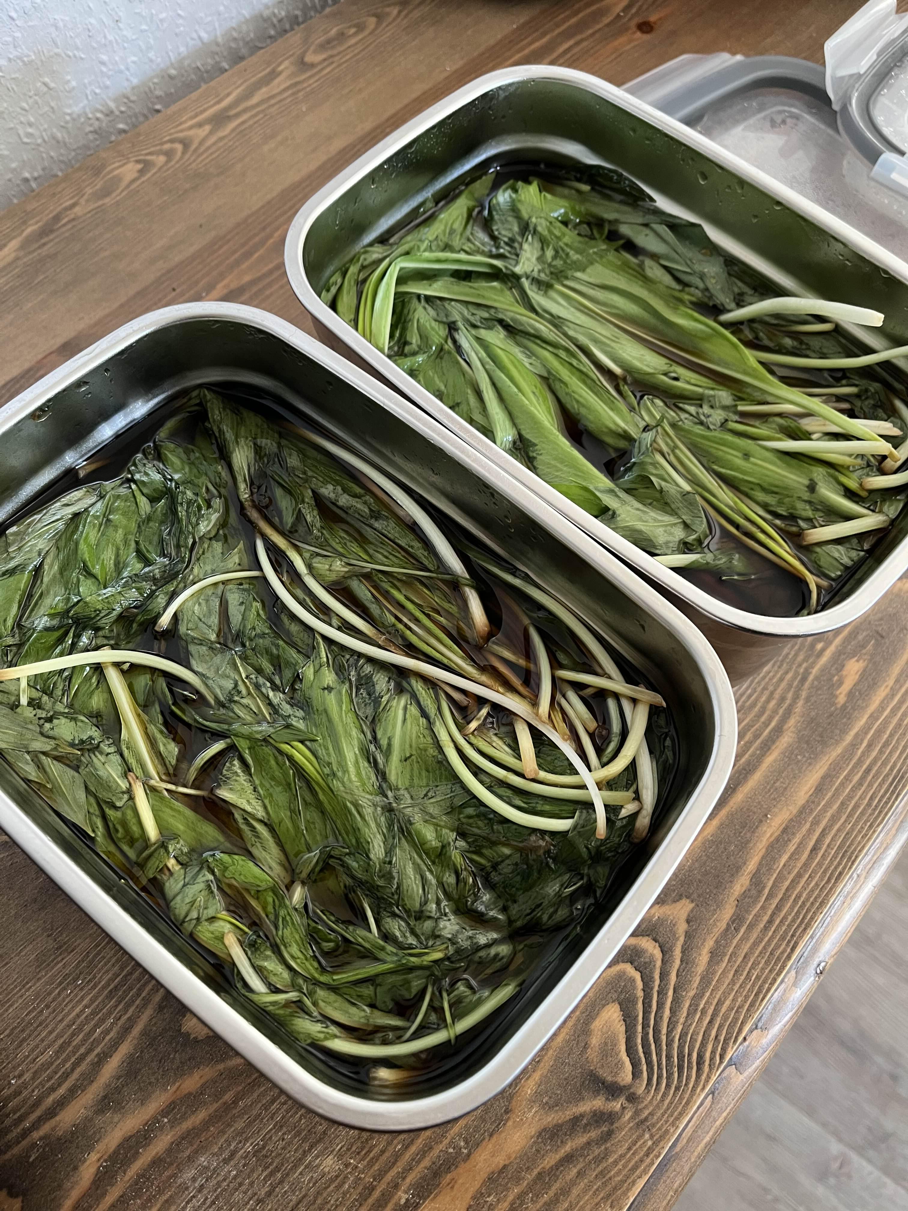 독일도 요즘 날씨가 살짝 풀리는 듯하더니 내가 좋아하는 Bärlauch 시즌이 됐다. 한국에도 제철 나물이 있듯이 독일에도 있다. 이맘때쯤에는 딸기, 아스파라거스, 명이가 철이고 조금 지나면 체리, 납작 복숭아도 나오기 시작한다. 한국에서 명이나물이란 그냥 고깃집에서 나오는 맛있는 반찬이었는데 여기서는 제철에 미친 듯이 사 먹고 파처럼 음식 위에 뿌려먹고 쌈 싸 먹고 장아찌 담그고 난리다. 처음에는 독일에서 명이를 구할 수 있다고 사람들이 장아찌를 담그길래 나도 장아찌만 담갔는데 한 친구가 자기는 명이 생으로 먹는 게 제일 맛있다고 파스타도 해 먹고 이것저것 해 먹는다고 했다. 그래서 나도 처음으로 명이를 생으로 먹어봤는데 이게 웬걸 너무 맛있었다. 맨날 장아찌로만 먹어서 이 낯선 매끈한 비주얼이 생으로 먹으면 안 될 것 같기도 하고 왠지 좀 꺼려졌는데 막상 먹어보니 부추처럼 알싸한 맛이 너무 맛있다. 부추를 너무 좋아하지만 독일에선 구하기 어려워서 아쉬웠는데 명이 시즌에는 조금 덜 아쉽다.