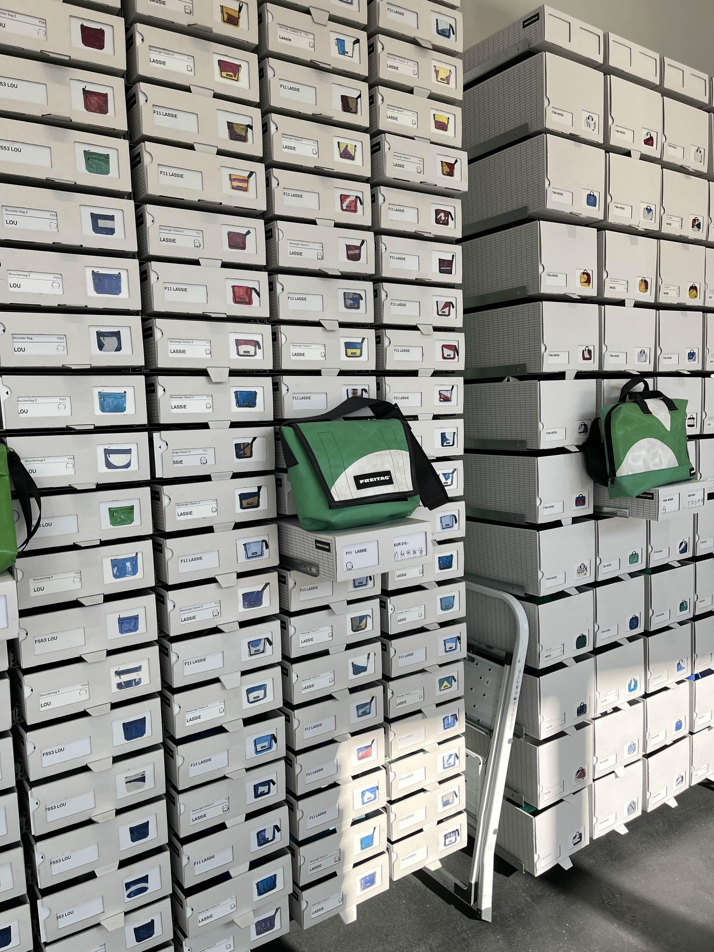 프라이탁 꿀팁 💡 의자를 뚜껑을 열면 이렇게 아직 전시되지 않은 제품들을 볼 수 있다. 뚜껑도 열고 사다리도 타고 올라가서 꺼내는 둥 누가 보면 여기서 일하는 줄 알겠다 😂