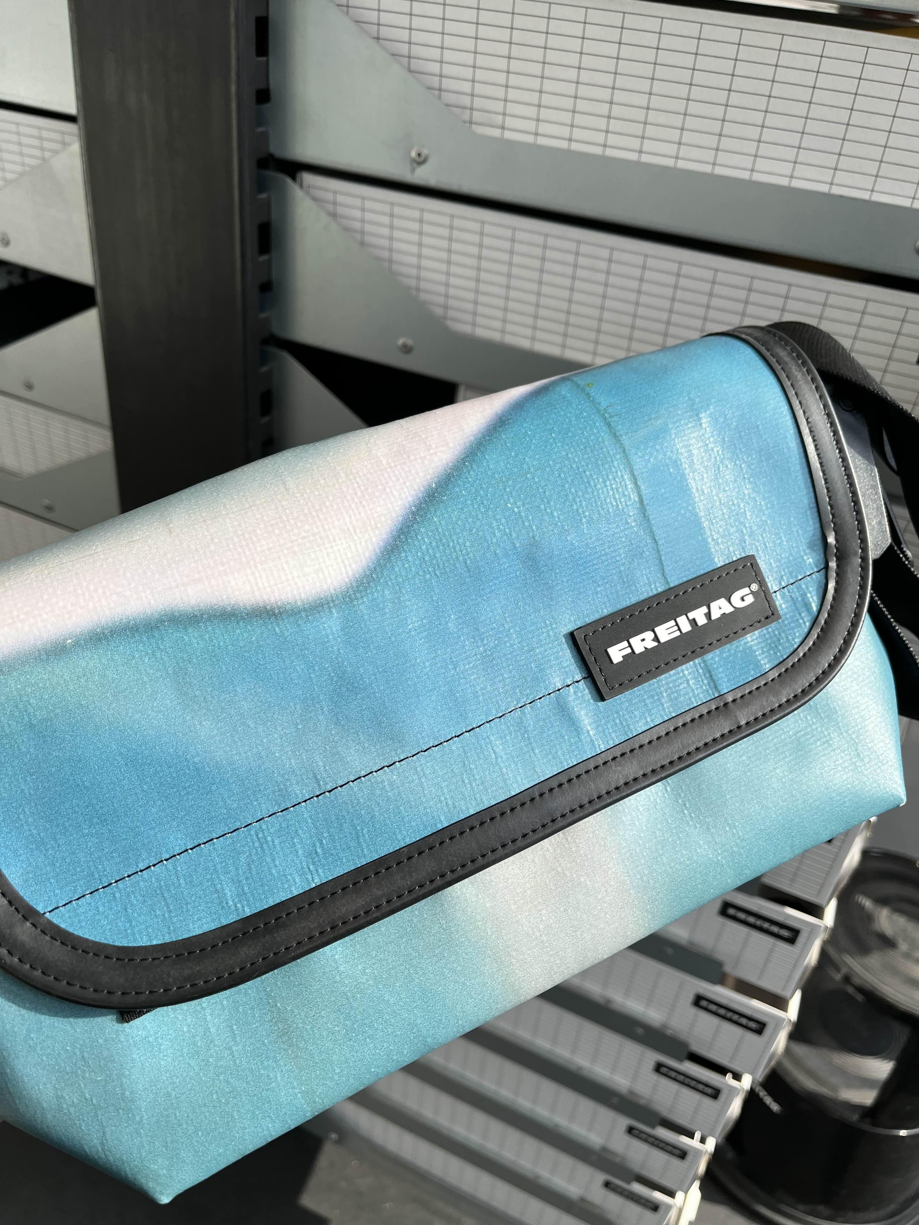 이날은 하늘색 패턴의 예쁜 가방들이 많았다. 조금 더럽긴 하지만 그래도 그게 프라이탁의 매력이니까 🤭