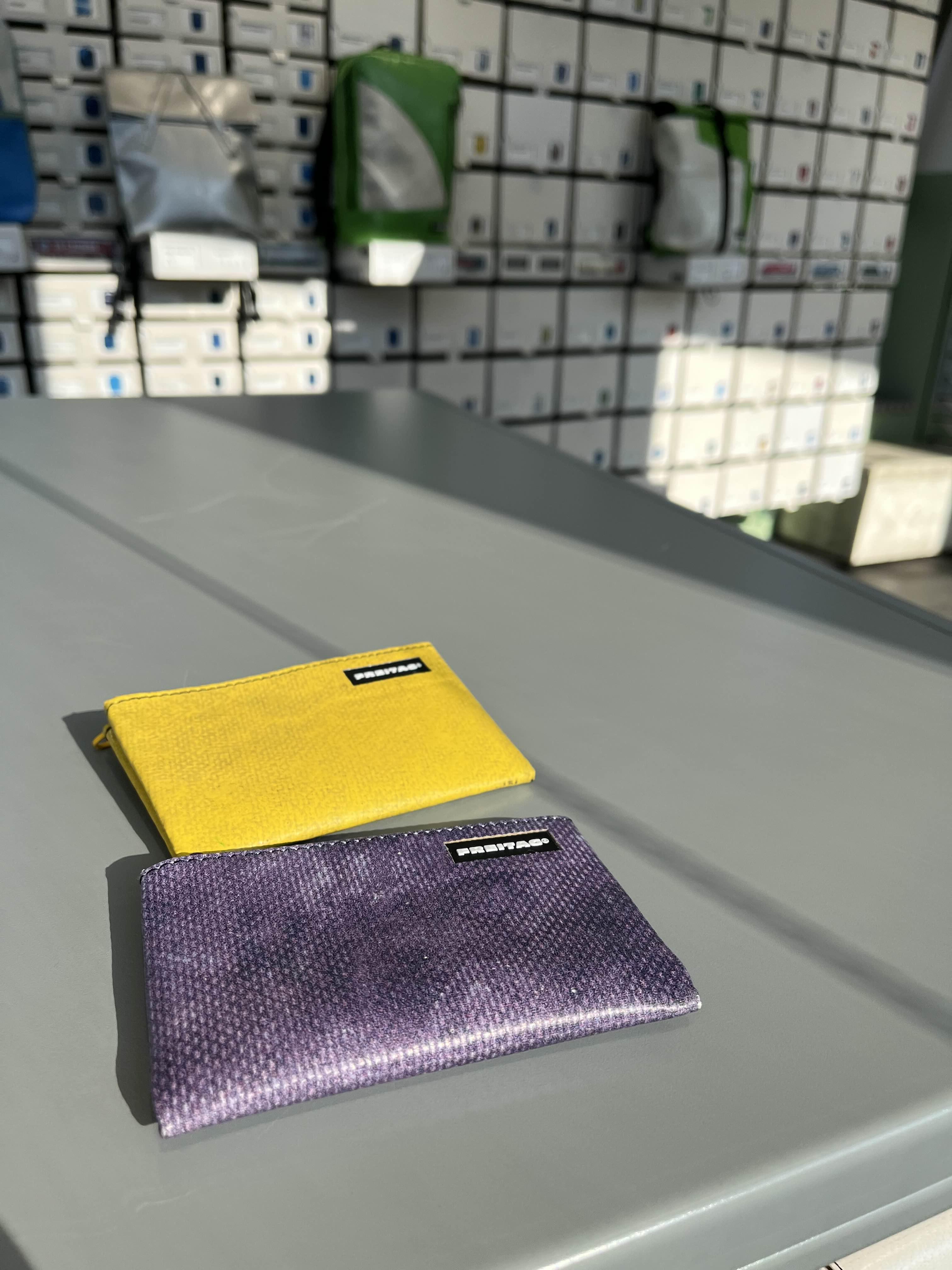 지난번에 산 프라이탁 가방을 아주 잘 들고 다니는데 이날도 프라이탁 가방이었다. 프라이탁 가방 메고 프라이탁 매장으로 들어가니까 너무 뭔가 프라이탁 광팬 같아서 민망하기도 하고 😅 가방은 이미 있어서 지갑을 사고 싶어서 봤는데 이 두 지갑이 귀여운 게 딱 눈에 들어왔다. 내가 좋아하는 노란색과 오묘하게 예쁜 보라색 💛💜 가격도 39유로였나 다른 지갑들에 비해서 심플한 동전지갑이라 가격도 괜찮았다.