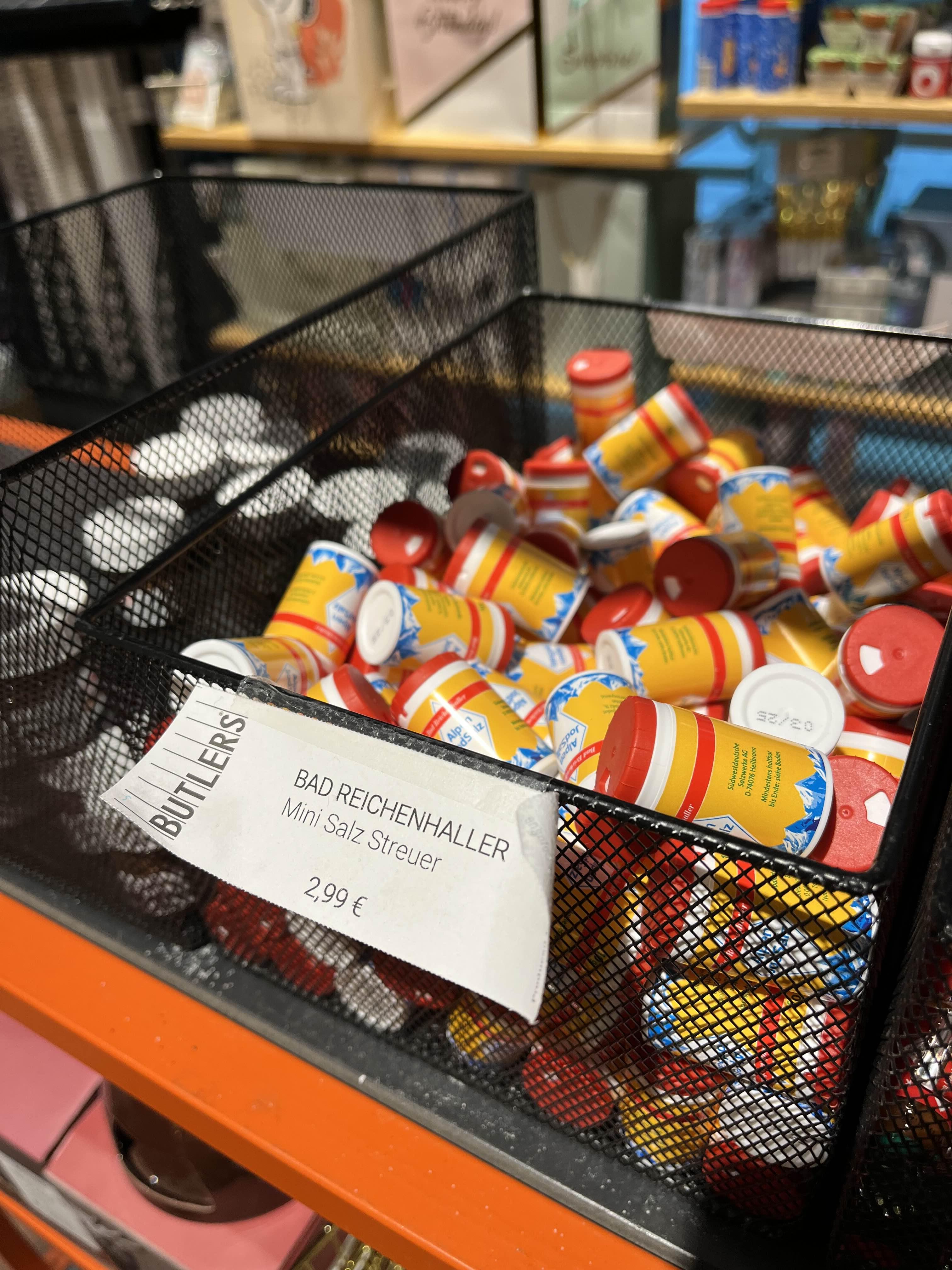 예전부터 여행을 할 때마다 사고 싶었던 게 있는데 바로 미니 소금이다. 독일 식당에는 대부분 테이블에 소금이랑 후추가 놓여 있는데 다른 나라들을 여행할 때 그렇지 않은 곳이 많았고 가져 다 달라고 부탁을 하면 가져다주긴 하지만 세월아 네월아였기 때문에 소금, 후추 없이 밥을 못 먹는 나는 너무 불편했다. 그래도 식당에서는 늦어도 가져다주지만 여행하면 길거리 음식도 많이 먹는데 이때는 간이 안 맞으면 그냥 낭패다. 어쩔 수 없이 먹겠지만 아쉬운 적이 한두 번이 아니었다. 며칠 전 시내에 쇼핑을 하러 갔다가 문득 예전에 Butler에서 봤던 미니 소금이 생각나서 사러 갔다.