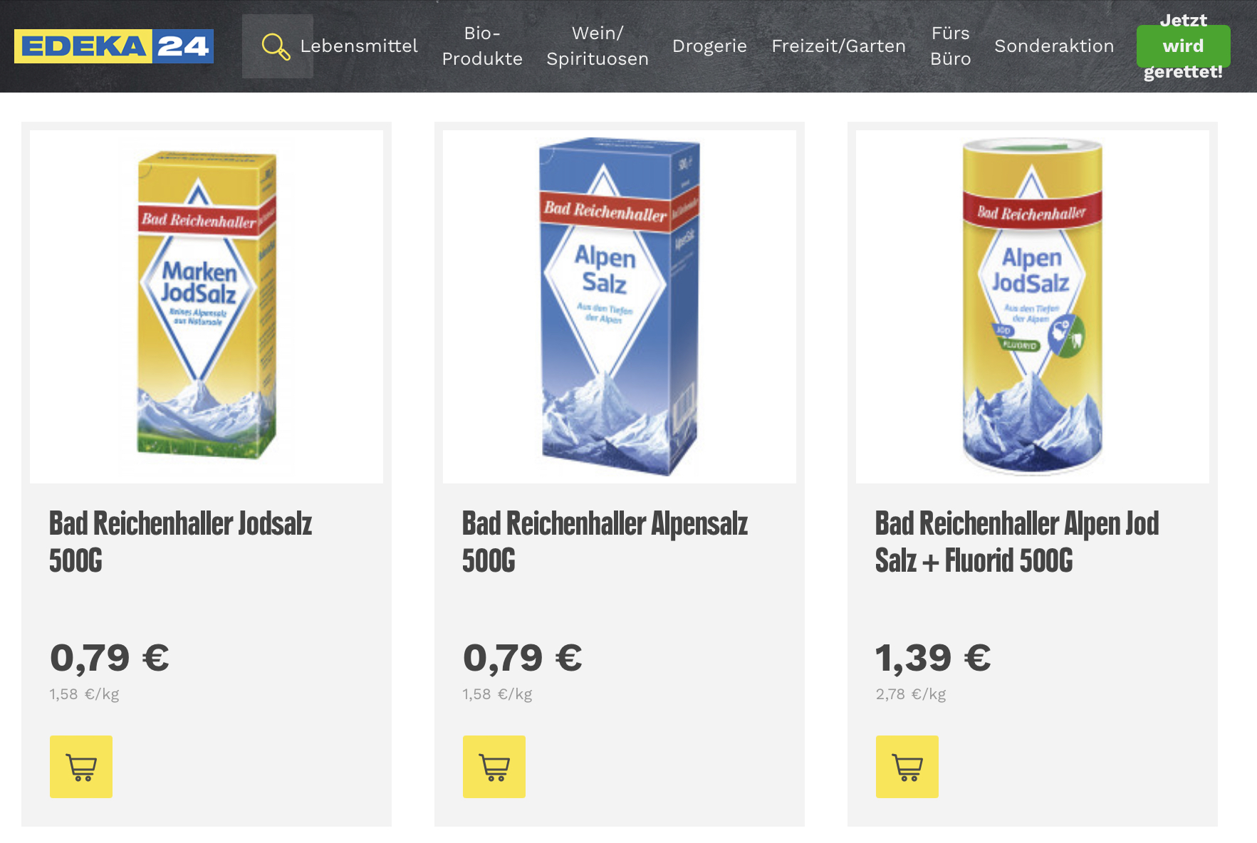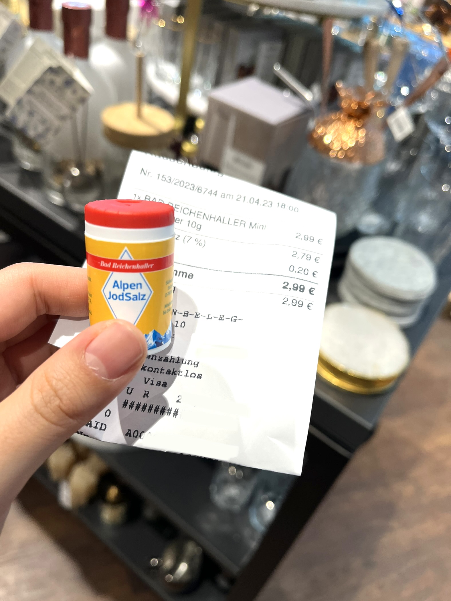 참고로 독일 마트 중에 비싼 축에 속하는 에데카에서도 같은 소금 500그람에 이 정도에 판다 🥲 그래도 이제 싱거울 걱정 없이 먹을 수 있으니 됐다! 평생 쓸 테다.