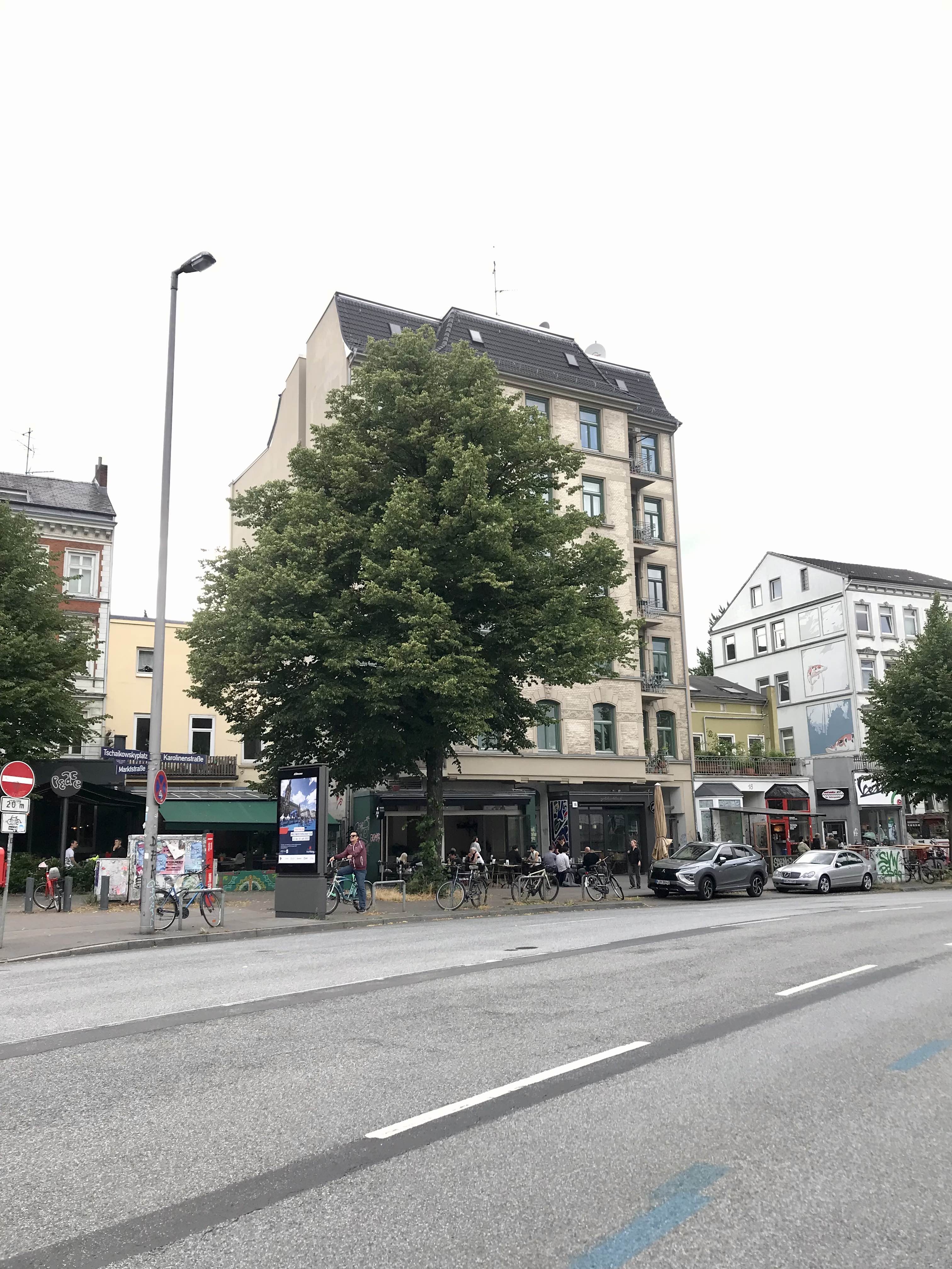 U2호선을 타고 Messehallen에서 나오면 건너편에 바로 식당이 보인다. 간판이 잘 보이지 않아서 긴가민가 했는데 저기 까만색 식당이다. 이날 하늘은 함부르크 답게 회색이다.