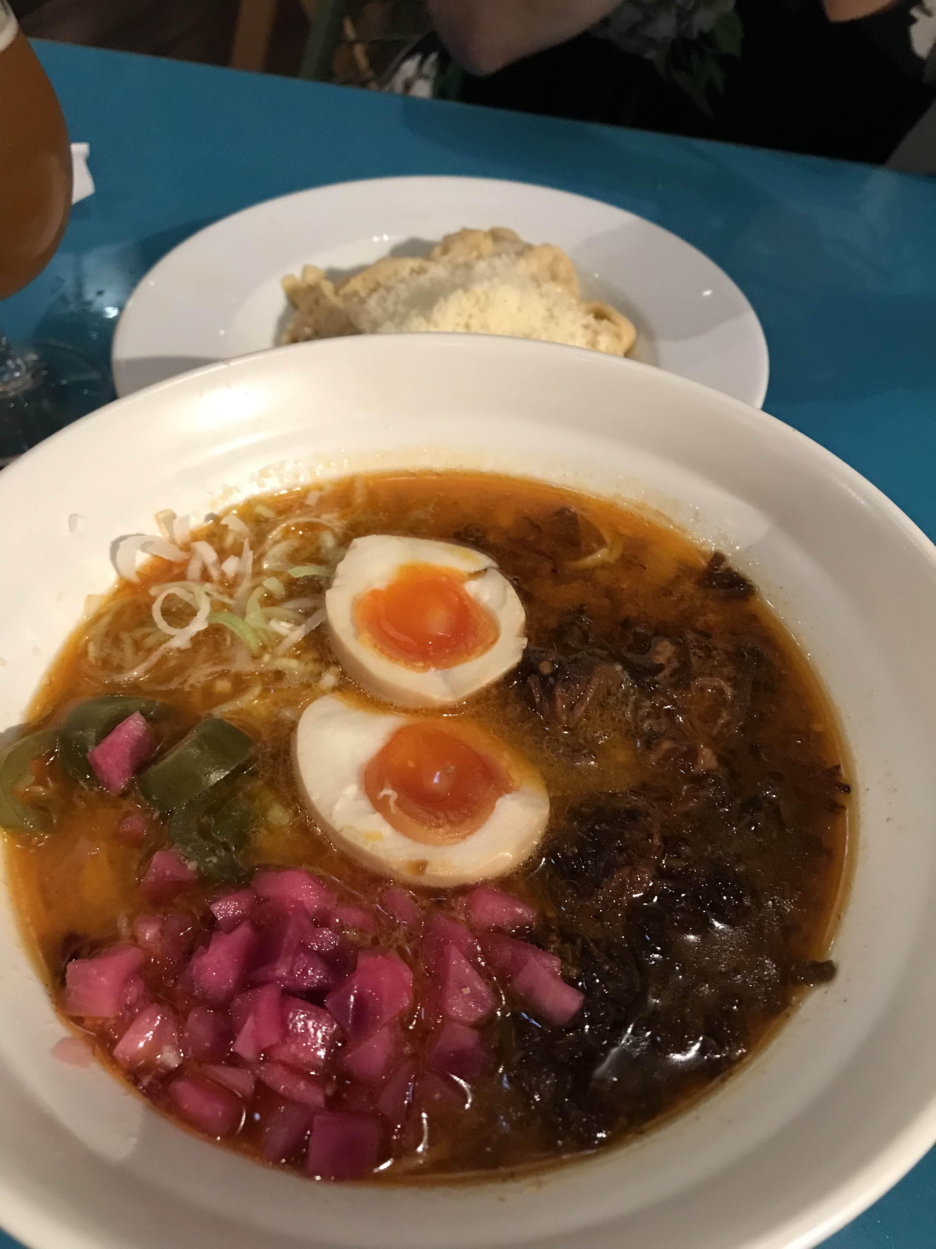 애피타이저로 Bao를 먹고 시간차를 둔 다음 메인을 먹어야 하는데 두 개를 같이 받아서 너무 배가 불렀다 😂 바오와 라멘을 주문을 받고 조리하는 사람들이 아시안이 아니라서 살짝 의심하긴 했는데 한 입 한 순간 의심 제로. 엄청 맛있었다. 그릇이 허접해보이지만 파스타를 주문한 친구도 엄청 만족스러워했다. 보이는 것보다 훨씬 괜찮다.
