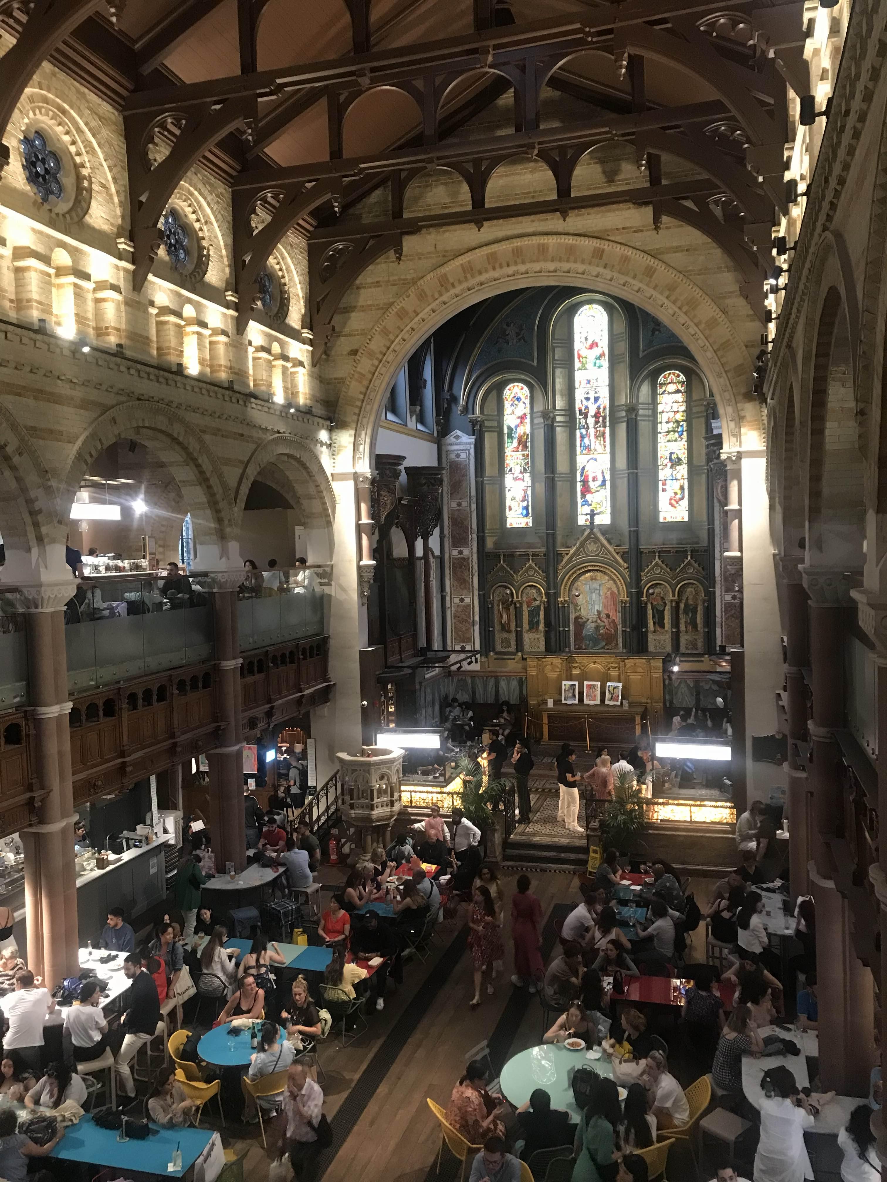 뮤지컬을 다 보고 나서는 뭐 할까 하다가 친구가 추천하는 페스티벌(?)을 갔는데… 비가 와서 그런지 평소와 다르게 사람들도 별로 없고 해서 다른 갈 곳을 찾아보다가 오래된 성당 안에 있는 푸드 코트가 있다길래 갔다.