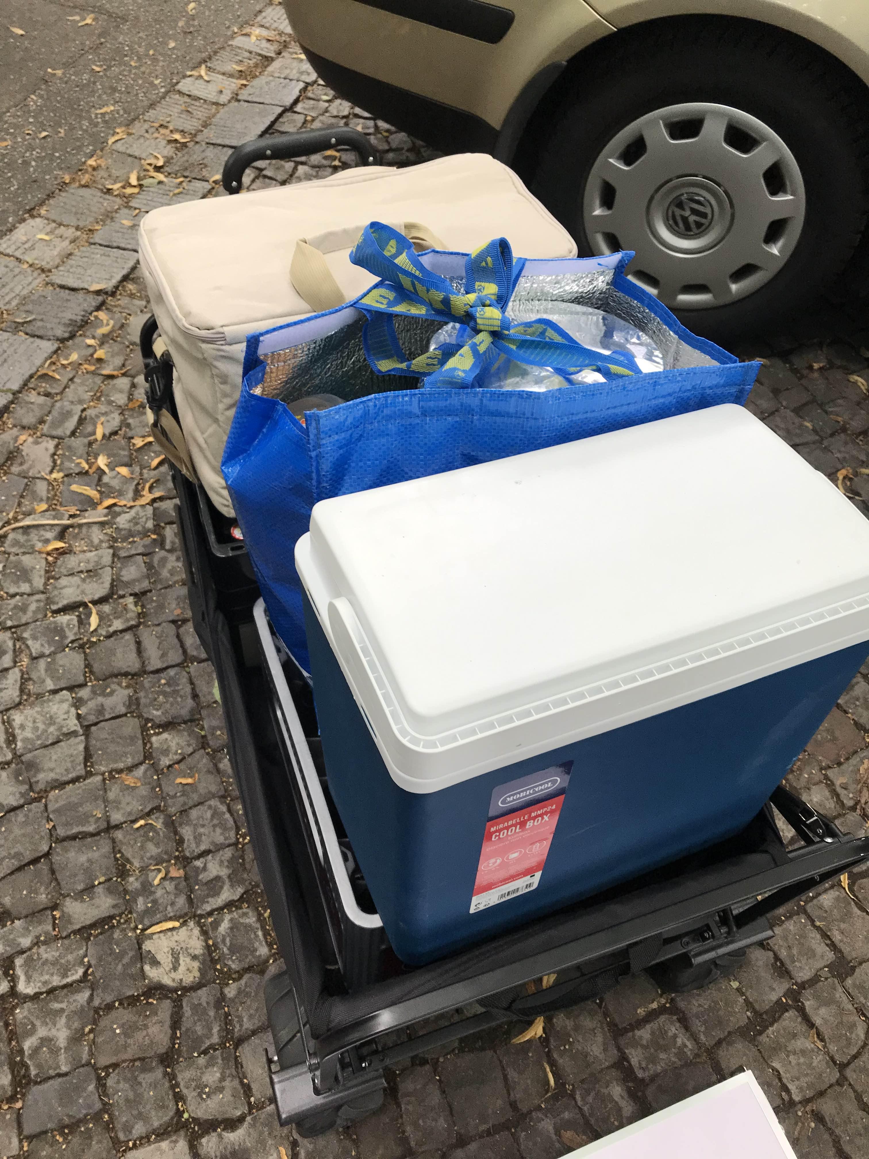 공원에다가 주차를 하고 짐을 다 싣는데 저 카트가 대박이었다. 몇 년 전에 피크닉 갈 때 쓸 거라고 친구가 산 카트인데 매번 취소돼서 못 쓰고 이번에 처음으로 썼다. 맥주 50병 정도 담고 그위에다가 음식, 고기, 얼음, 그릴 등등 죄다 올렸는데도 안 무너지고 아주 튼튼했다.