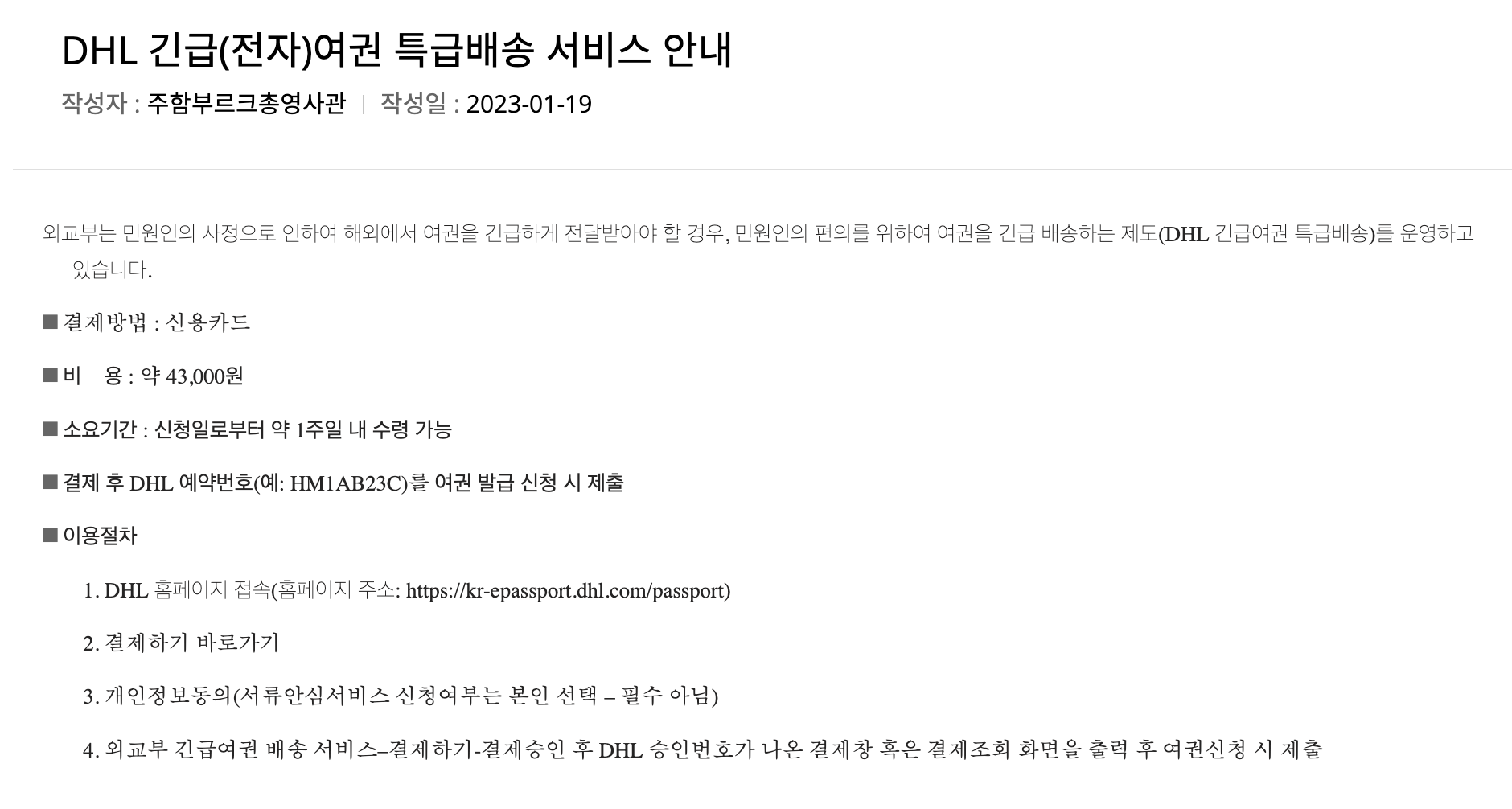 🔗 DHL 긴급여권특급 배송서비스 홈페이지 https://kr-epassport.dhl.com/passport
