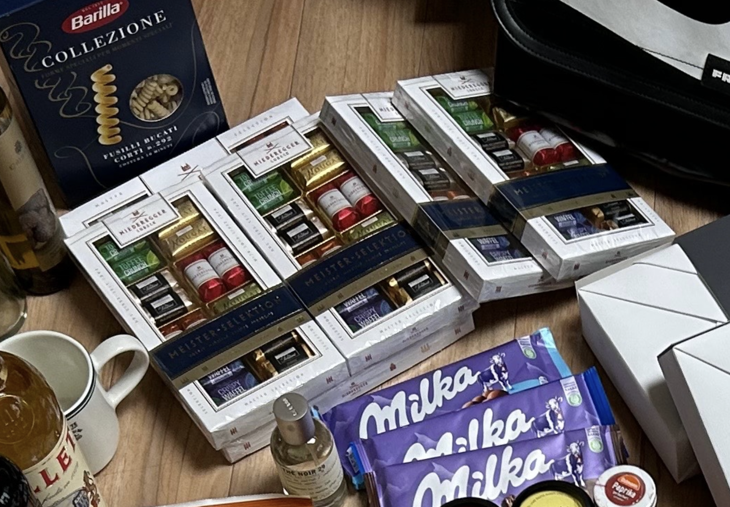 10유로 언저리에 더 큰 선물세트도 있다. 이거는 미니 박스들이고 매장에 가면 훨씬 큰 세트들도 많다. 매장이 있는지 모르겠지만 함부르크에서는 갤러리아 지하에서 살 수 있다. 패키지도 너무 예쁘고 다양한 맛이 들어있어서 실패할 확률이 적다.