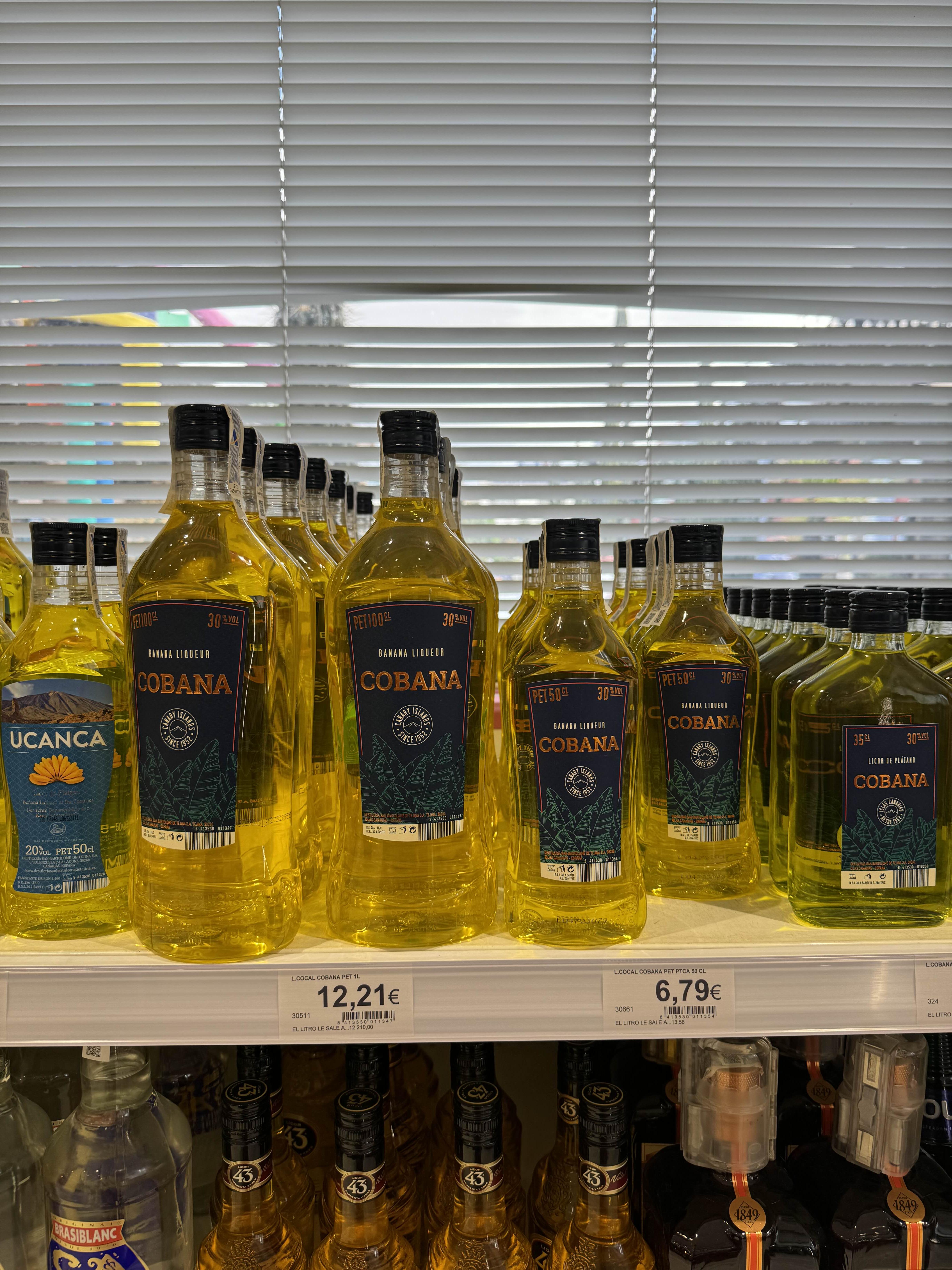 빠질 수 없는 올리브 오일, 와인, 테니리페 특산품 바나나 술! 올리브 오일은 잘 몰라서 10-20유로 사이에 페트에 들어있는 걸로 골랐다. 패키지에 그 여자가 그려진 스페인 유명한 올리브 오일을 사고 싶었는데 병 밖에 없어서 혹시 모르니 그냥 이걸로 샀다.