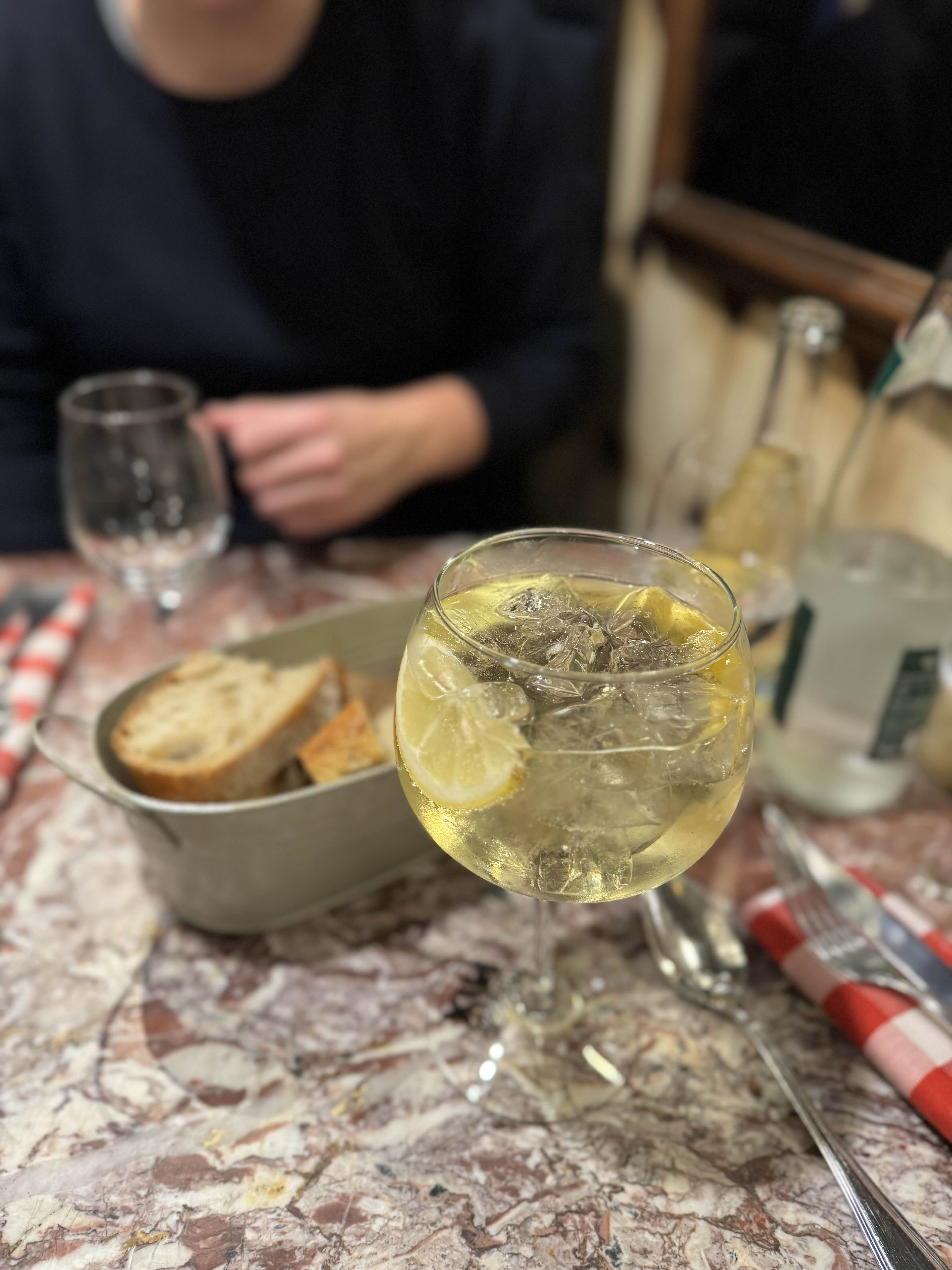 친구는 와인 시키고 나는 St.Germain Spritz 칵테일을 시켰다. 상큼한 칵테일을 좋아한다면 추천! 프랑스 리큐르가 들어간 칵테일이다. Lillet보다 덜 달고 상큼하다.