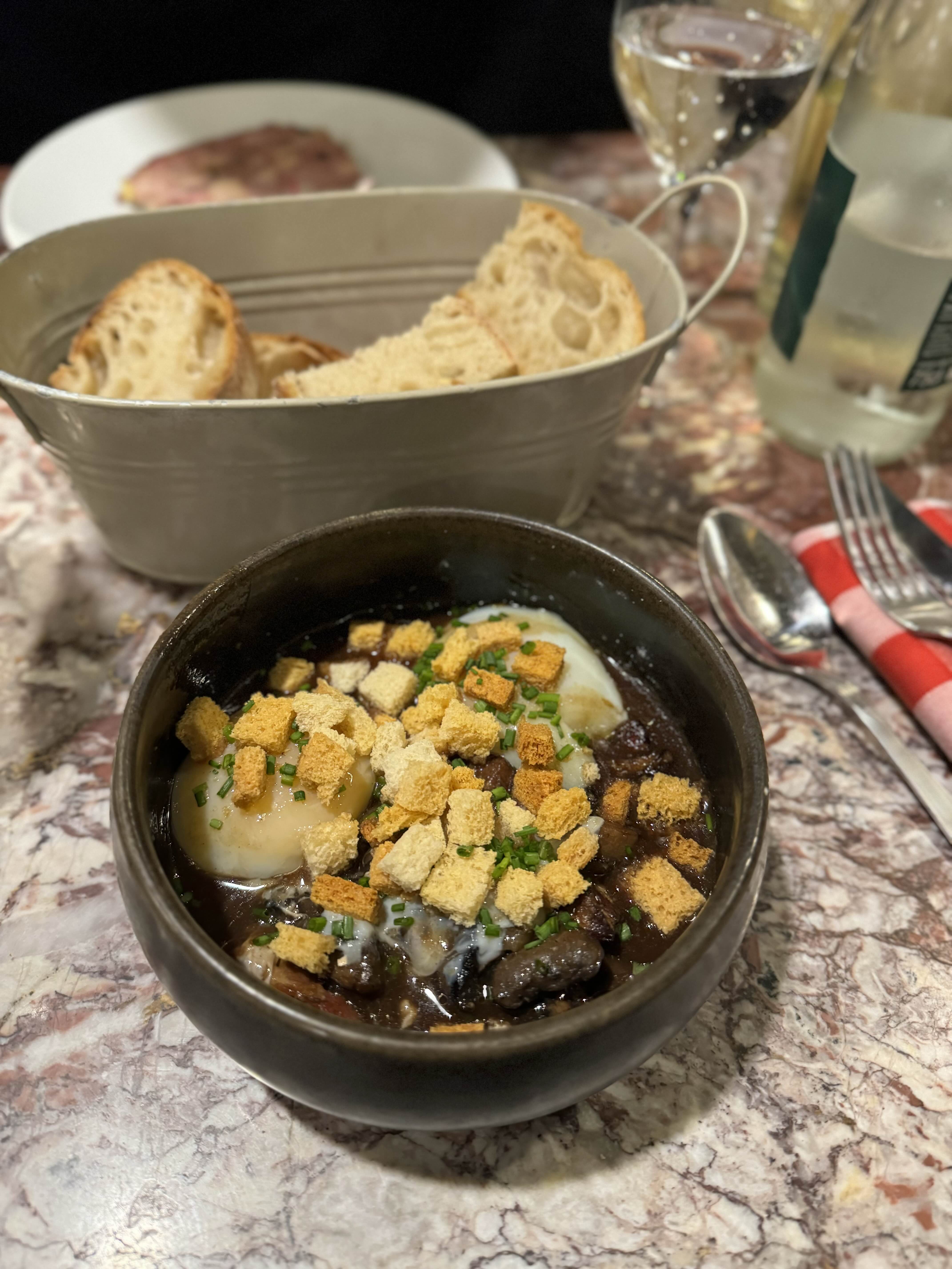 리옹 맛집을 적어놓은 블로그를 돌아다니다가 발견한 곳인데 구글 리뷰도 괜찮길래 예약했다. 7시 30분에 땡 열자마자 들어가려고 앞에서 기다리고 있었는데 우리 앞에 온 사람들은 예약 없이 왔는지 안 된다고 해서 돌아갔다. 예약하길 잘했다.