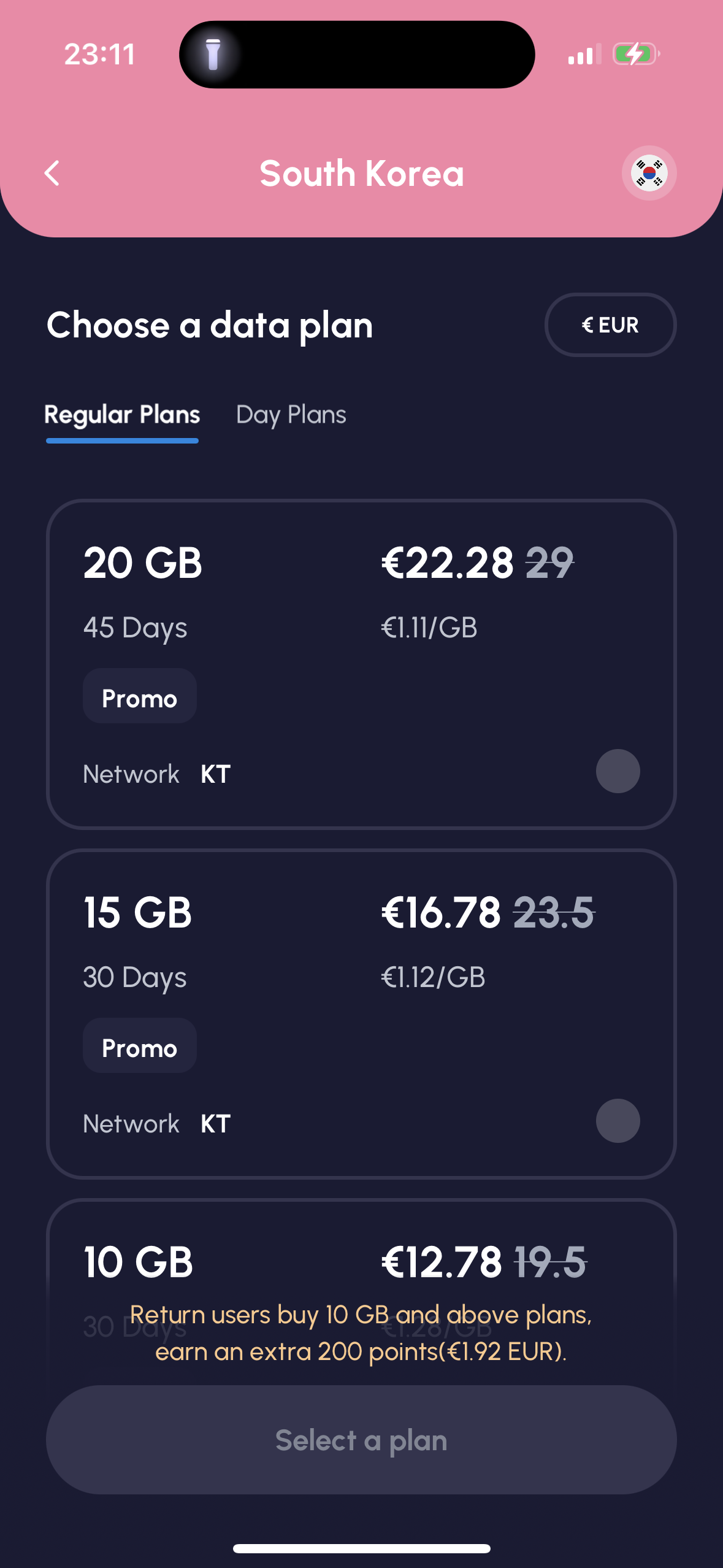 이번 한국 여행 때는 차라리 eSIM을 사서 카톡으로만 쓰는게 더 나을 거 같아서 여행자들이 자주 쓰는 eSIM 찾아봤다. 한국에서 선불 심카드도 많이 쓰는 거 같은데 내국인은 못 산다는 말도 있고 그러면 또 심카드를 바꿔 끼워야 하기 때문에 따로 심카드가 필요 없는 eSIM로 결정했다. 공항에서 심카드를 사고 끼우고 기다리고 할 필요도 없이 독일에서 미리 결제 한 다음 도착 전에 활성화시킬 수 있어서 더 편해 보였다.