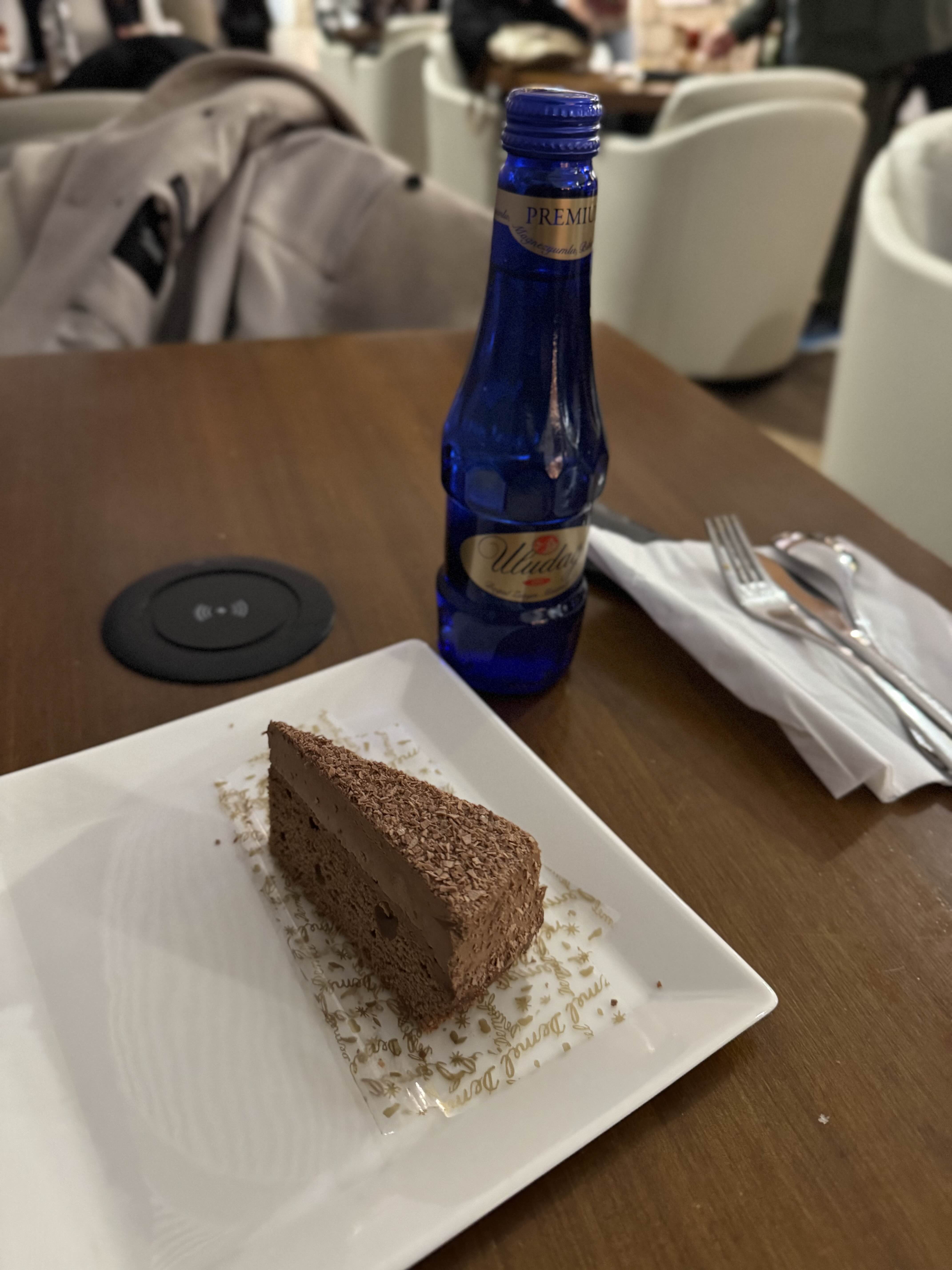 꾸덕해 보이는 초코 케이크랑 탄산수 하나 가져왔다. 베를린에서 한국 갈 때는 환승 시간 2시간이 너무 길다고 느껴졌는데 비즈니스 라운지에서 이것저것 좀만 먹었더니 2시간이 금방 가서 벌써 게이트로 갈 시간이 됐다. 쬐끔 아쉽...