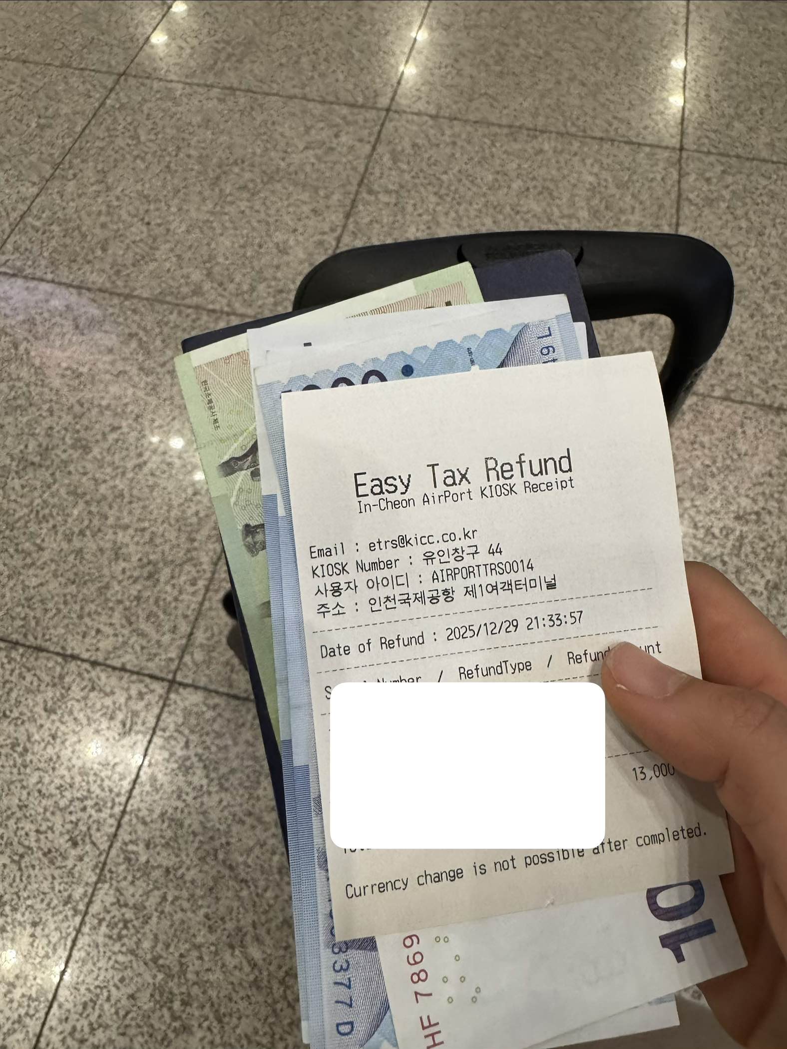 그리고 그 28번 게이트 옆 세금 환급 받는 곳으로 가서 현금으로 환급 완! 절차를 몰라서 여기저기 왔다 갔다 개고생 하고 만 삼천 원 받았습니다 🫠 그래도 한 번 해봤으니까 다음에는 수월하겠지. 다음에는 그냥 다이소랑 올리브영에서 산 것 오만가지 다 환급받을 테다.