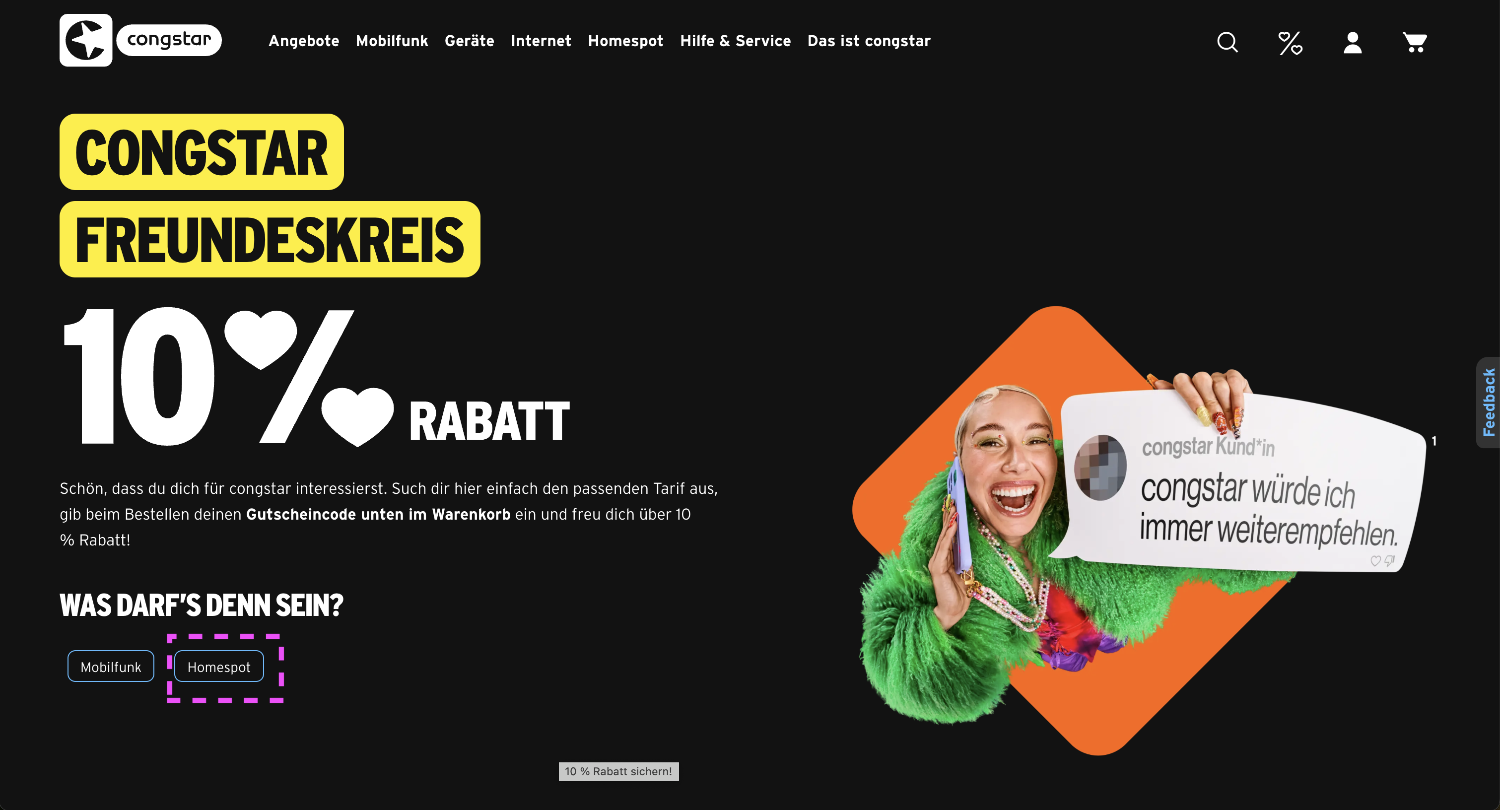 위에 있는 링크를 클릭해서 들어가면 이렇게 10% 할인이 적용된 요금제를 볼 수 있다. 여기서 우리는 집 인터넷이 필요한 거니까 Homespot을 클릭해 준다.