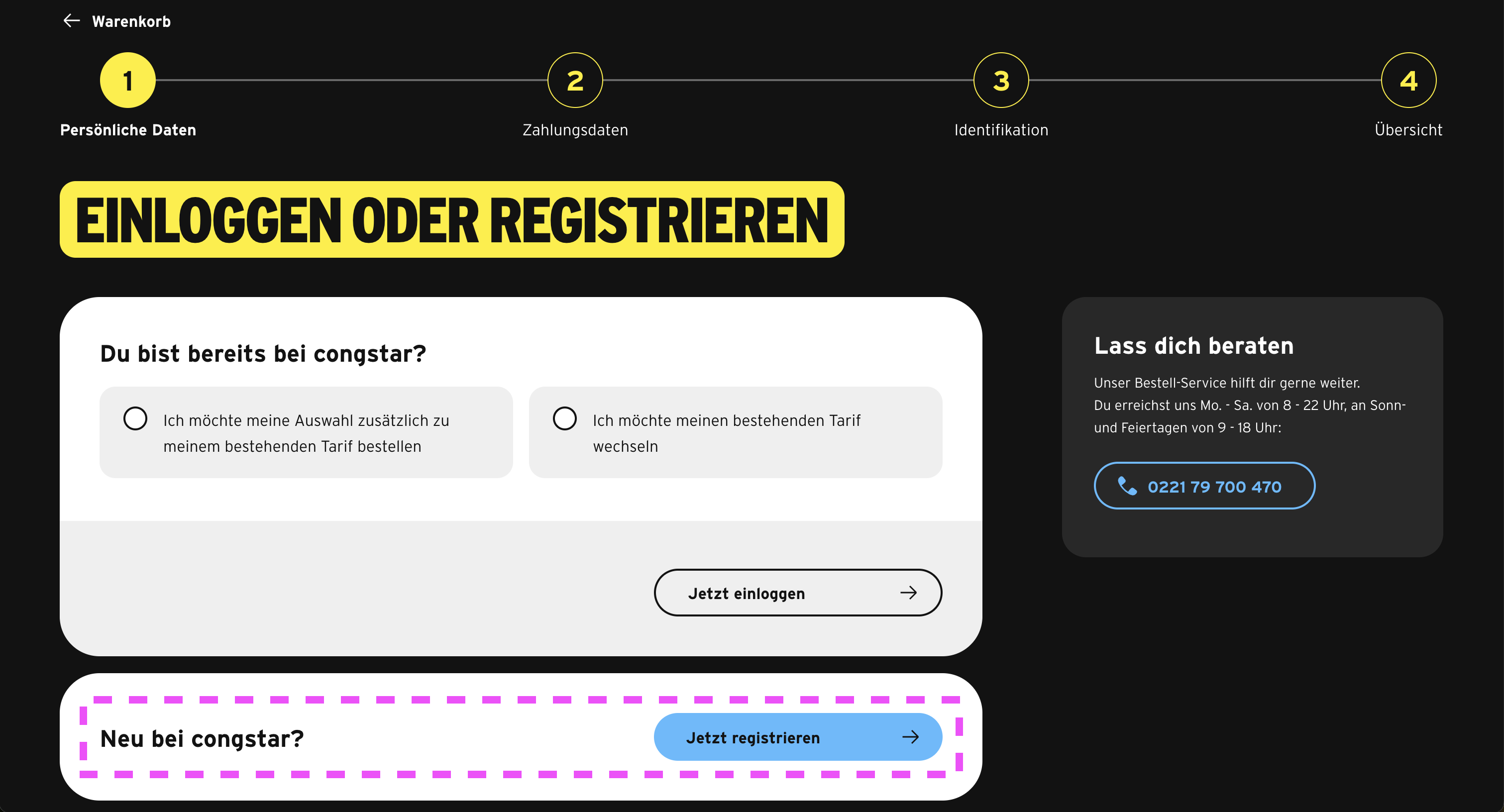 Congstar 인터넷을 처음 신청하는 거라면 당연히 아이디가 없을 테니 밑에 신규 회원 가입 버튼을 눌러준다. 그러면 이름, 주소, 결제 방법 등을 적고 나면 신원 확인 단계가 있다.