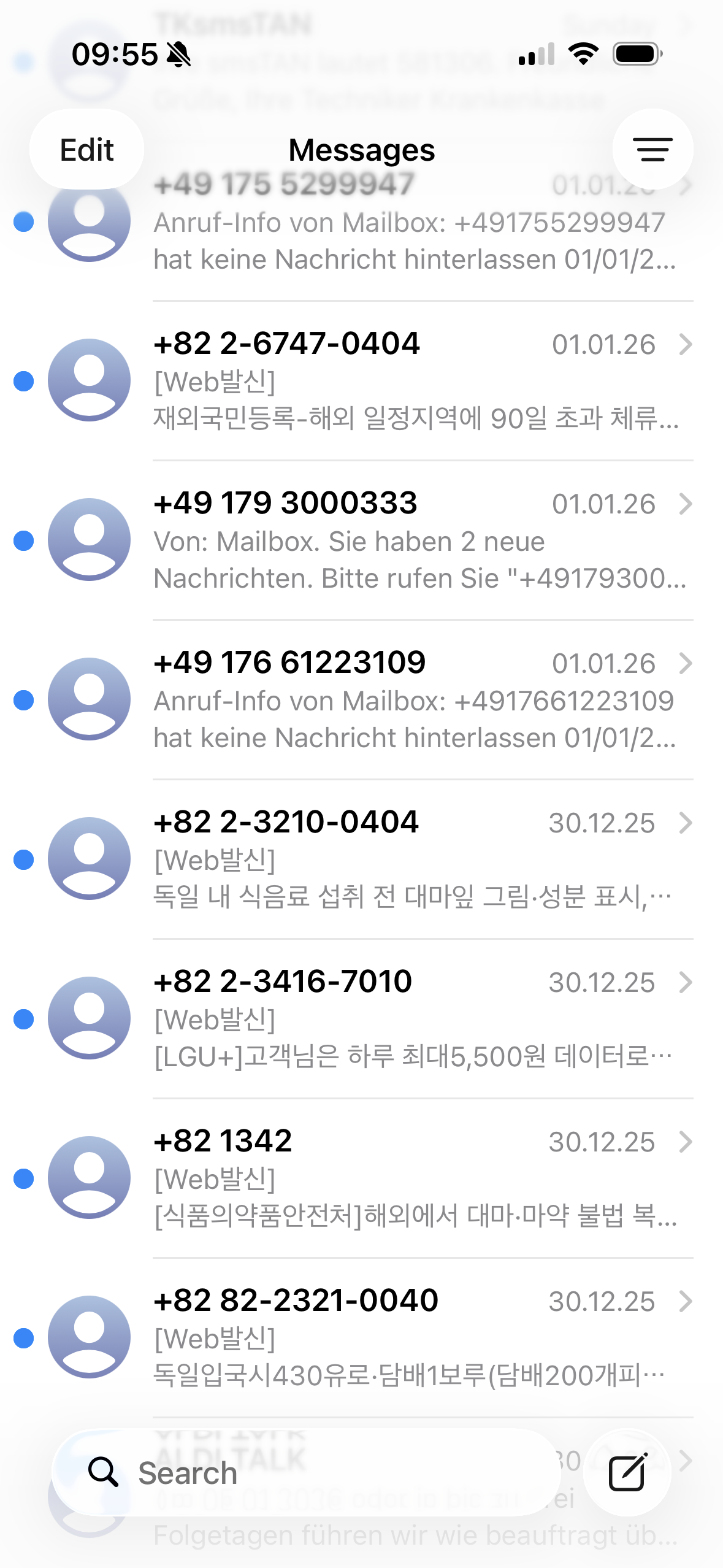 오른쪽의 사진은 독일에 왔을 때인데 인증 문자도 잘 오는 걸 확인할 수 있다. 휴대폰 두 개 안 들고 다녀도 되고, 유심 뺏다 끼웠다 안 해도 돼서 너무 편하다. 이심 만세 🙌